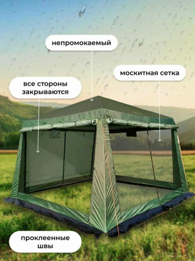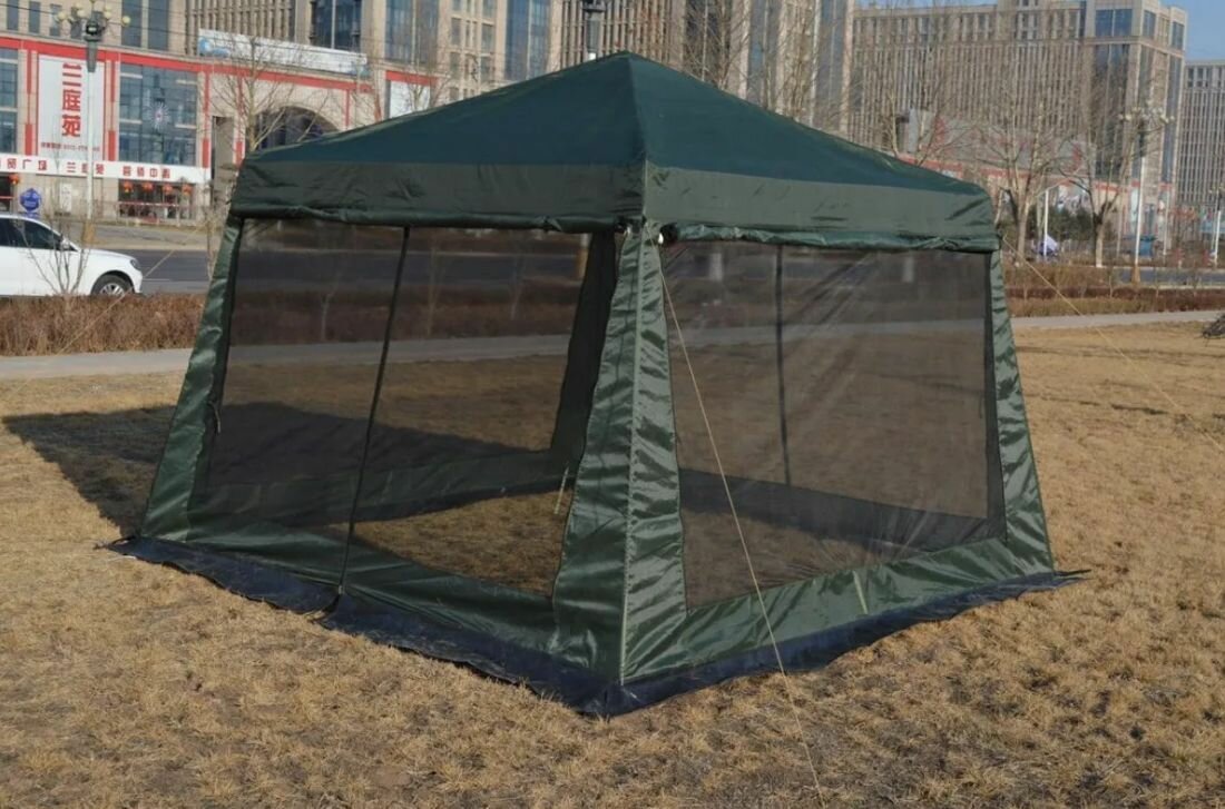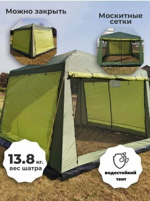 Шатер садовый с москитной сеткой от солнца. Палатка шатер туристический. Шатер для дачи тент беседка 1628D.
