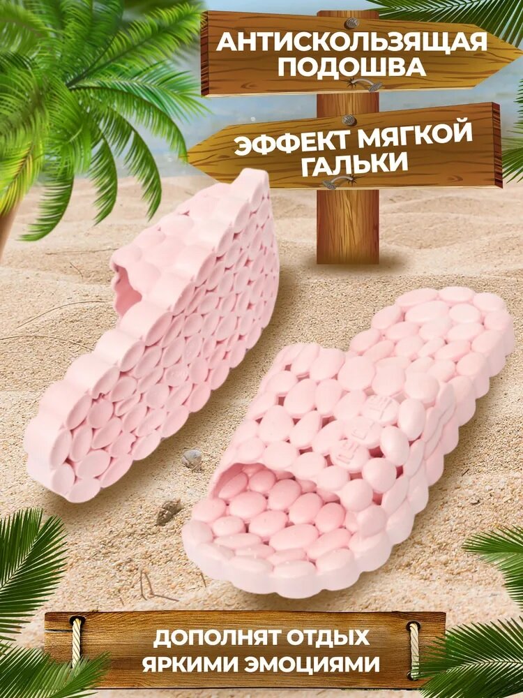 Массажные тапочки шиацу Галька, рефлекторные, розовые, р.36-37