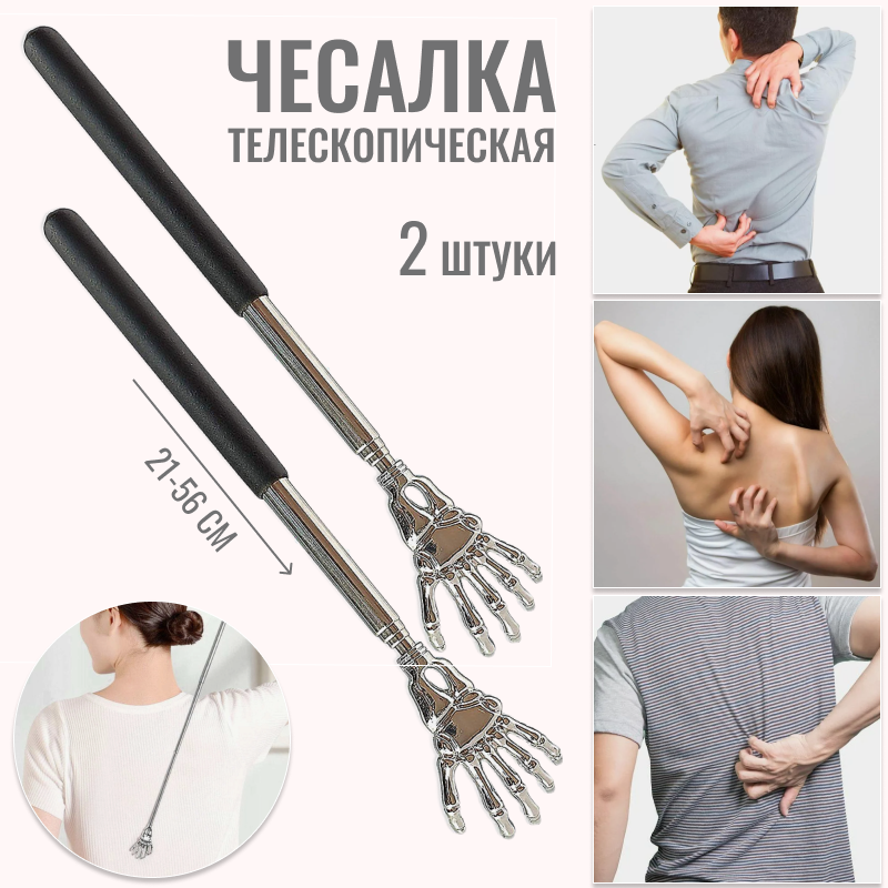 Чесалка для спины, 2 штуки, цвет черный, серый металлик, телескопическая, максимальная длина 56 см интересное: