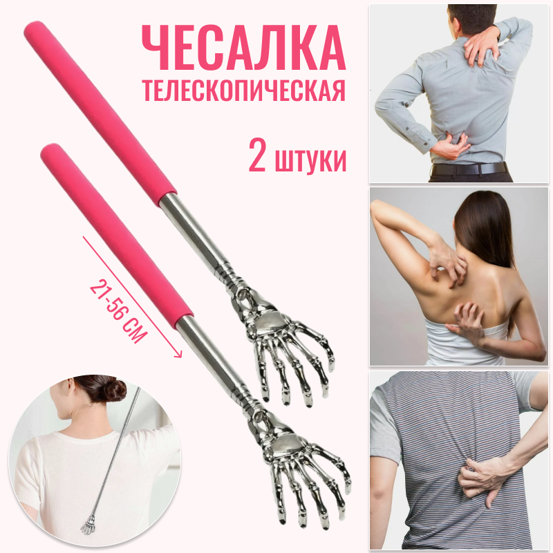 Чесалка для спины, 2 штуки, цвет розовый, серый металлик, телескопическая, максимальная длина 56 см интересное: