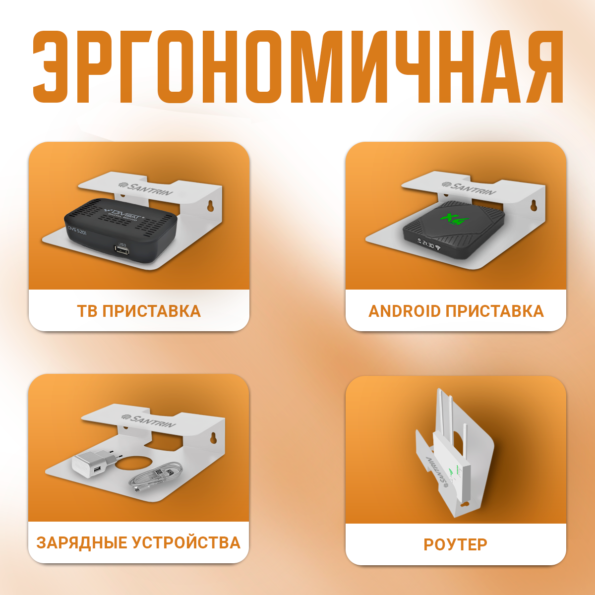 Полка для приставки, роутера на стену WALL SHELF-S SANTRIN белая интересное: