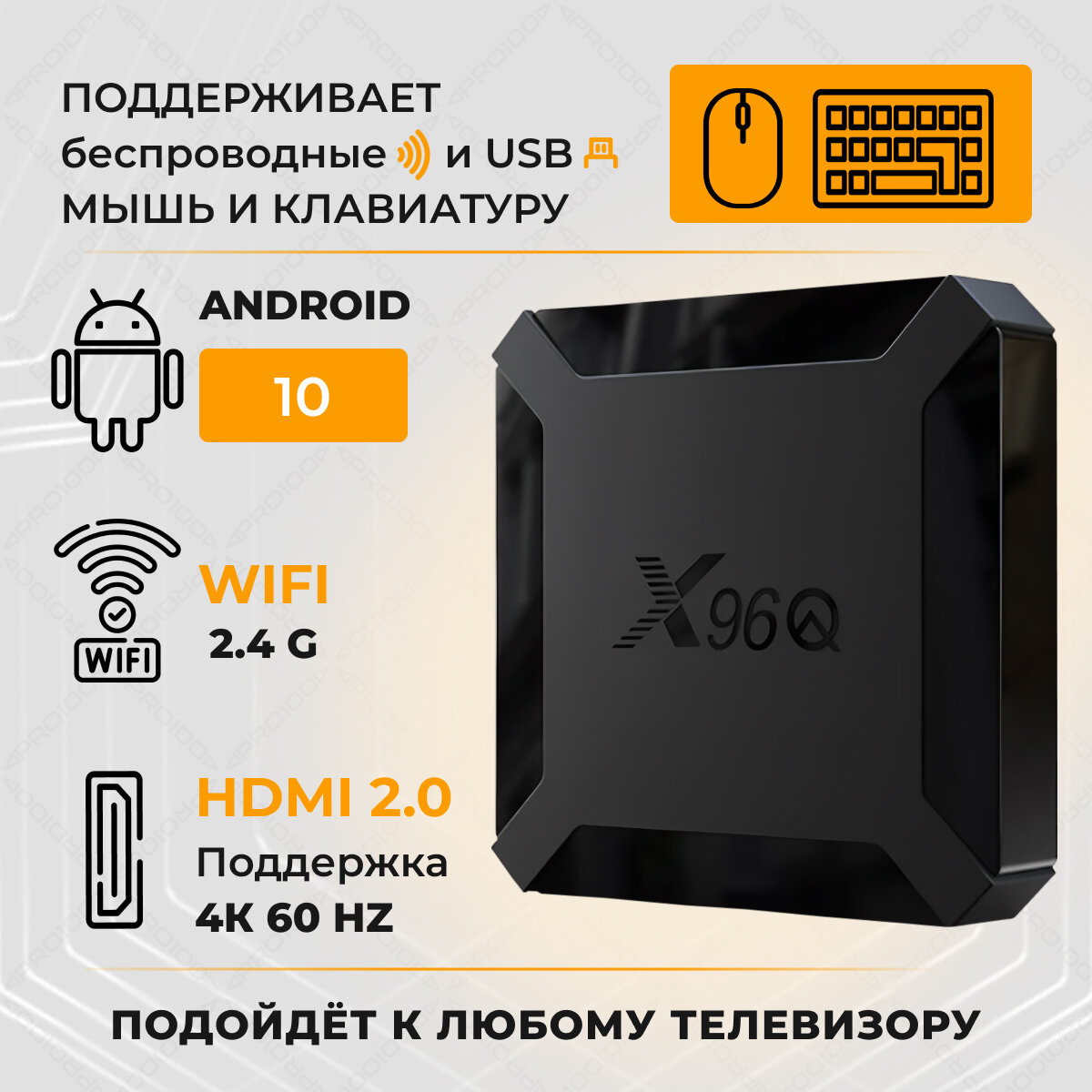ТВ-приставка смарт TV X96Q 4/64Gb, черный