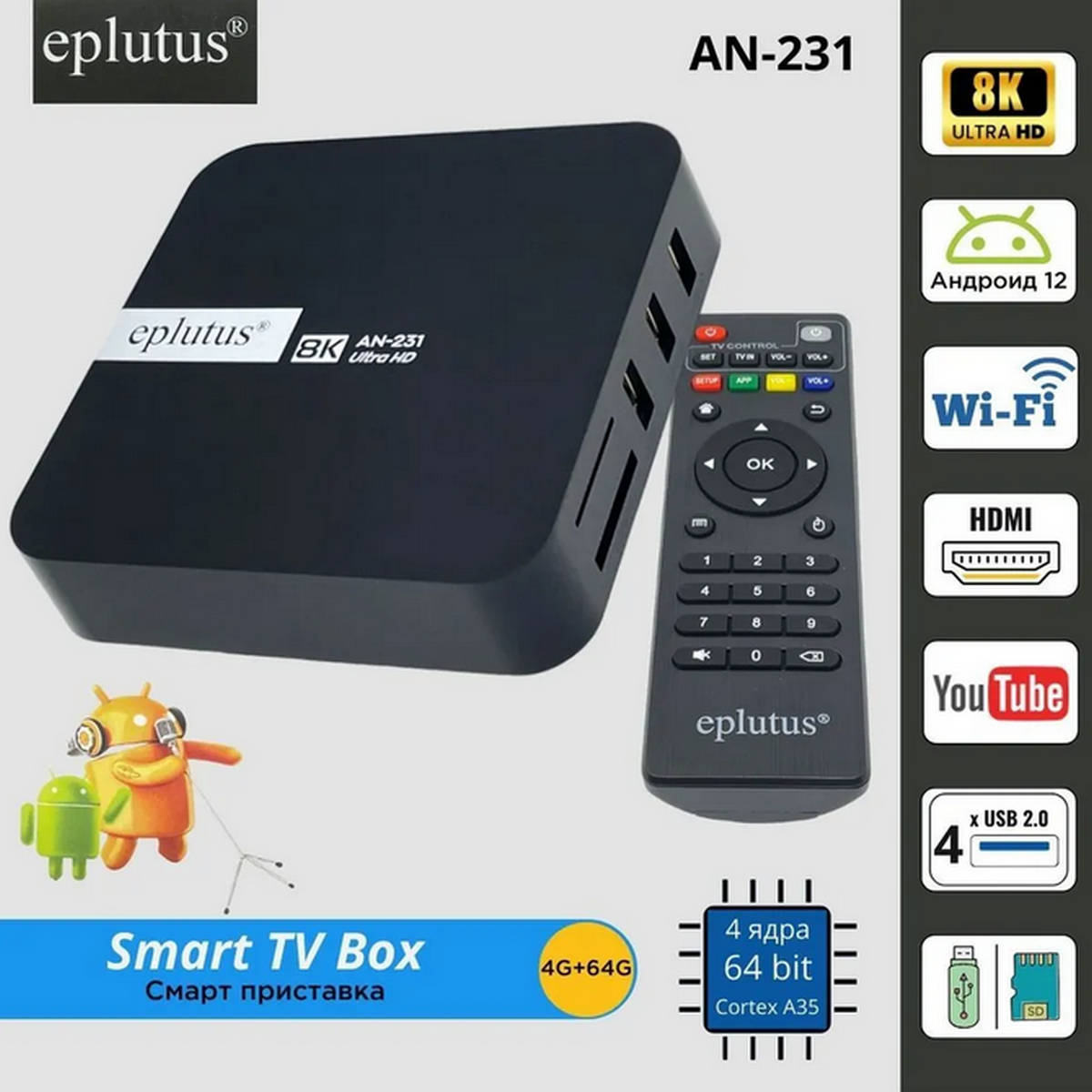 Смарт-приставка Eplutus AN-231/8K/4+64ГБ