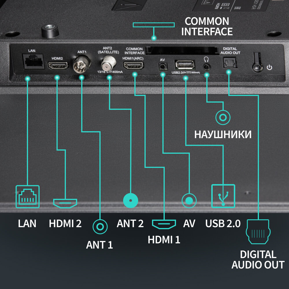 | Разъемы и интерфейсы | USB Type-A / вход HDMI / вход аудио оптический / слот CI |