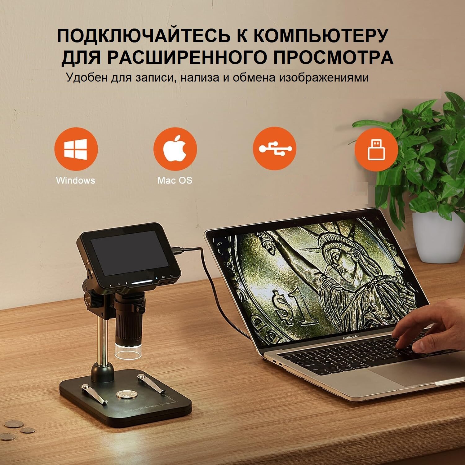 Цифровой микроскоп, с 5-дюймовый HDMI экран, фото JPG, видео MOV интересное: