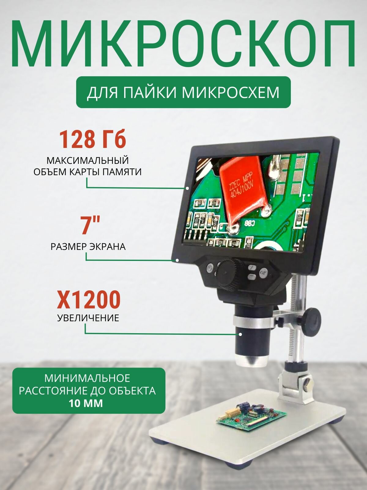 Цифровой микроскоп для пайки микросхем, 7 дюймов, 1200х с цветным монитором интересное: