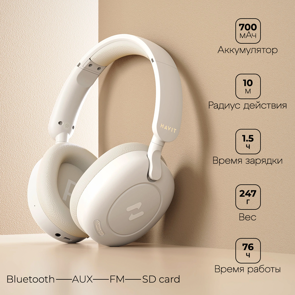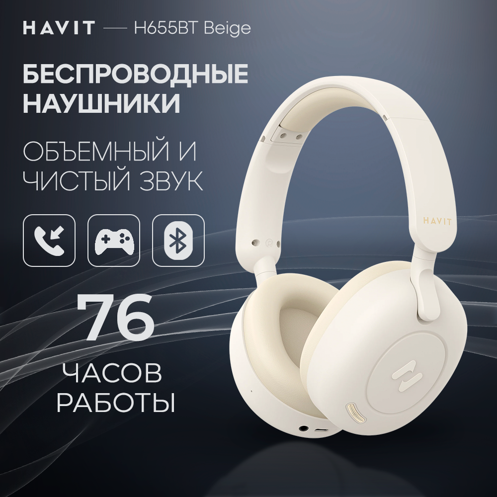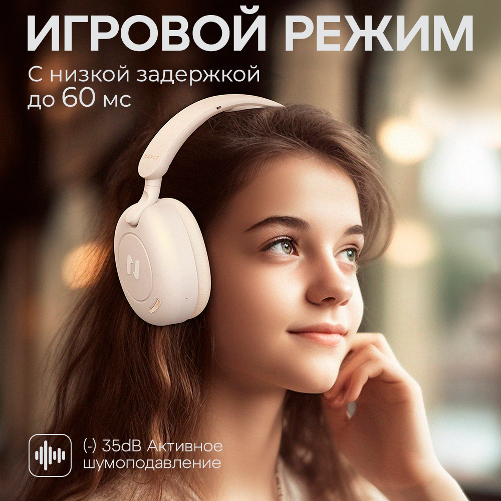 СохранитьНаушники беспроводные HAVIT H655BT с микрофоном, активным шумоподавлением, увеличенным временем работы, игровые, бежевые интересное:
