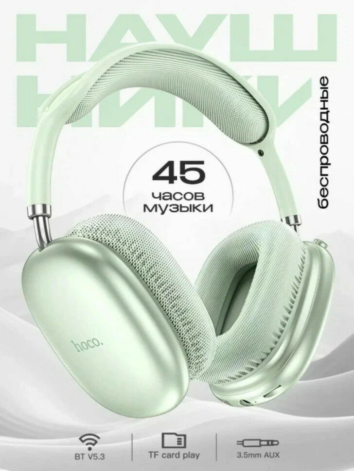 Стереонаушники Bluetooth полноразмерные Hoco W35 Air Light V5.3/45ч зелёный интересное: