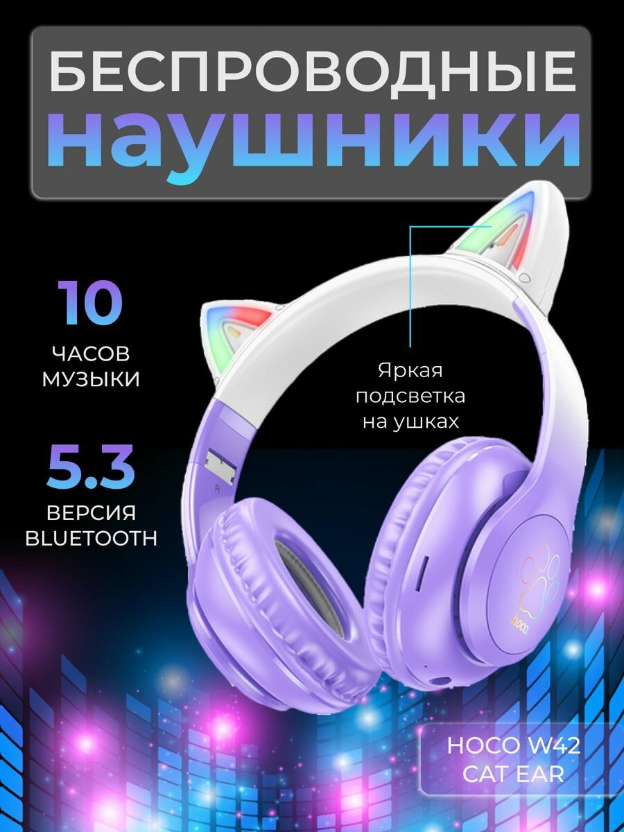 Беспроводные наушники Hoco W42 с ушками, фиолетовый