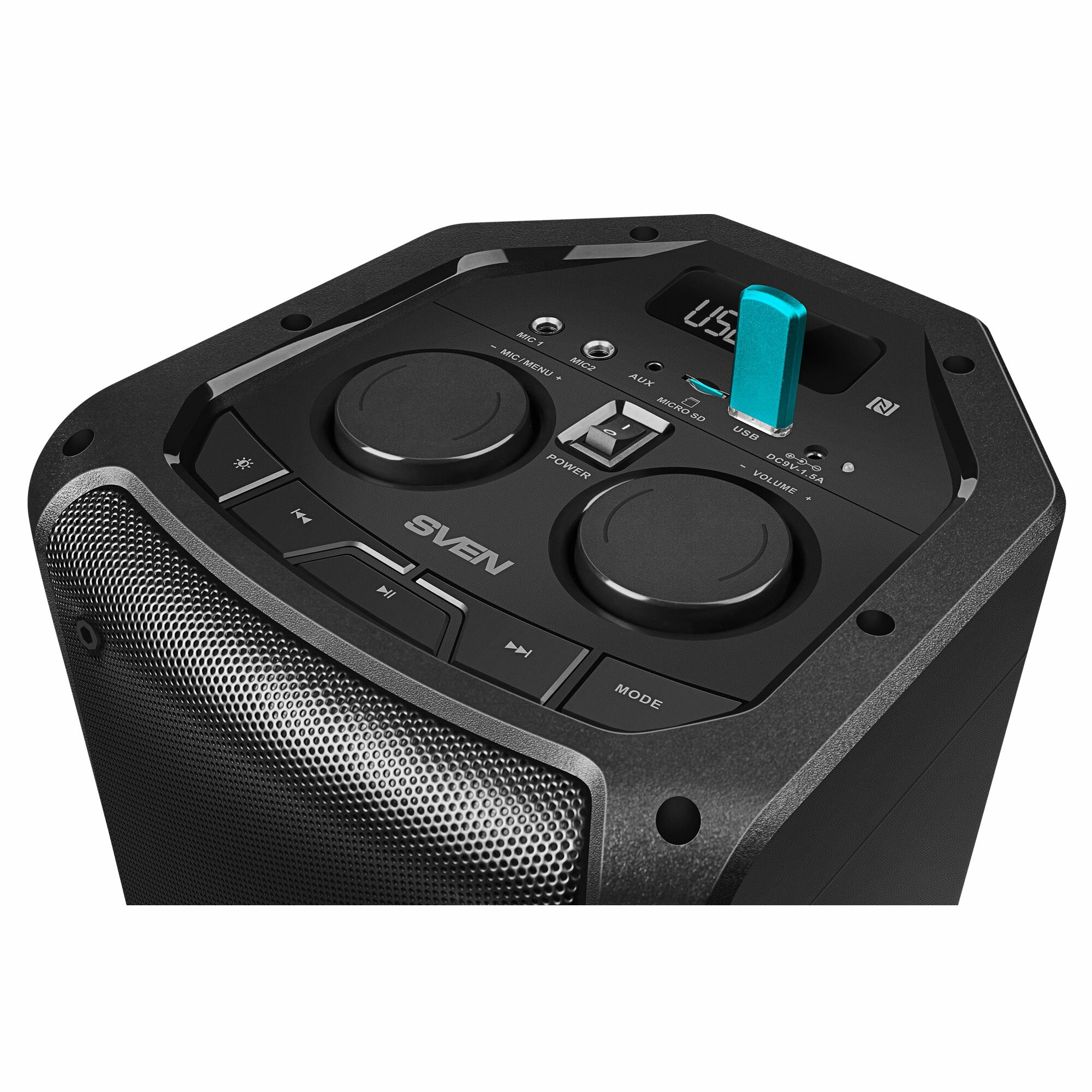 Портативная акустика SVEN PS-710, мощность 100 Вт (RMS), Bluetooth, FM-радио, USB, microSD, LED-дисплей, встроенный аккумулятор
