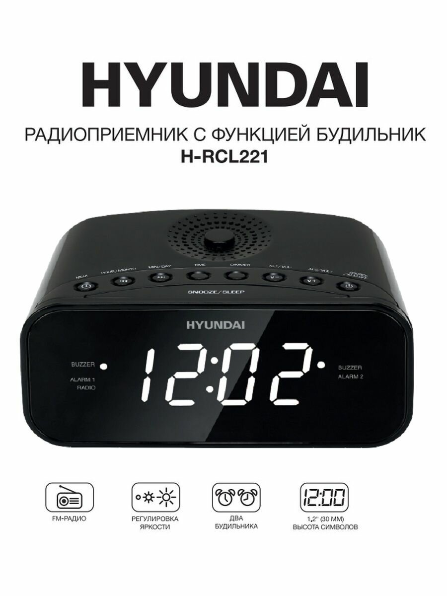 Радиобудильник Hyundai H-RCL221 черный LCD подсв: белая часы: цифровые FM