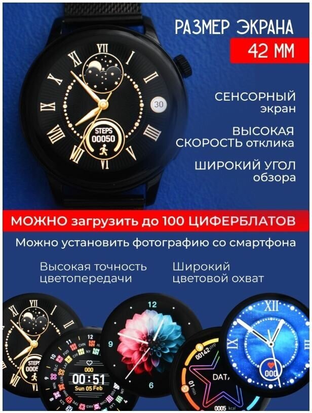 Смарт часы, G3 Pro, женские, круглые 42мм, smart watch, умные наручные часы, черные интересное: