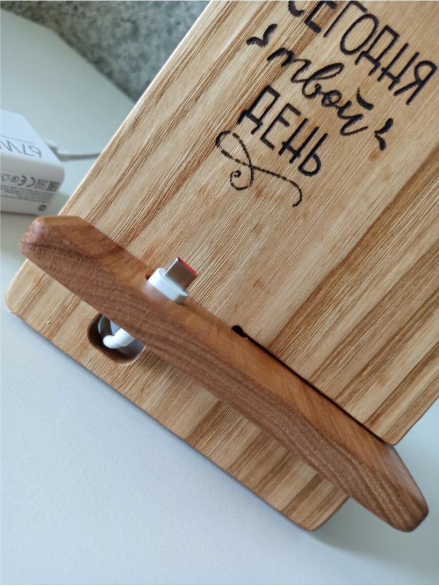 Подставка для телефона из дерева с гравировкой " Сегодня твой день" интересное: