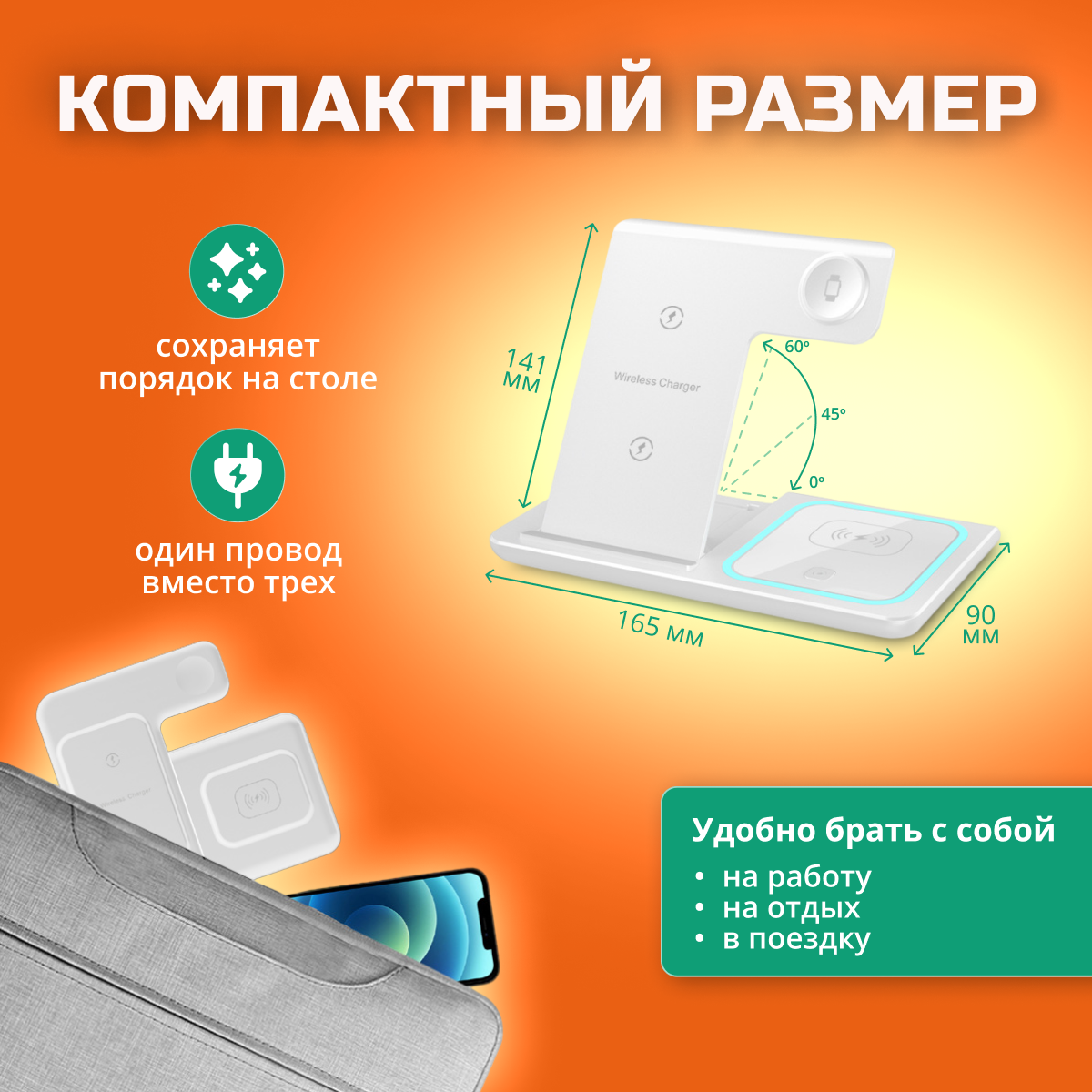 Беспроводная зарядка 3 в 1 | Смартфон, наушники, часы интересное: