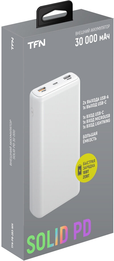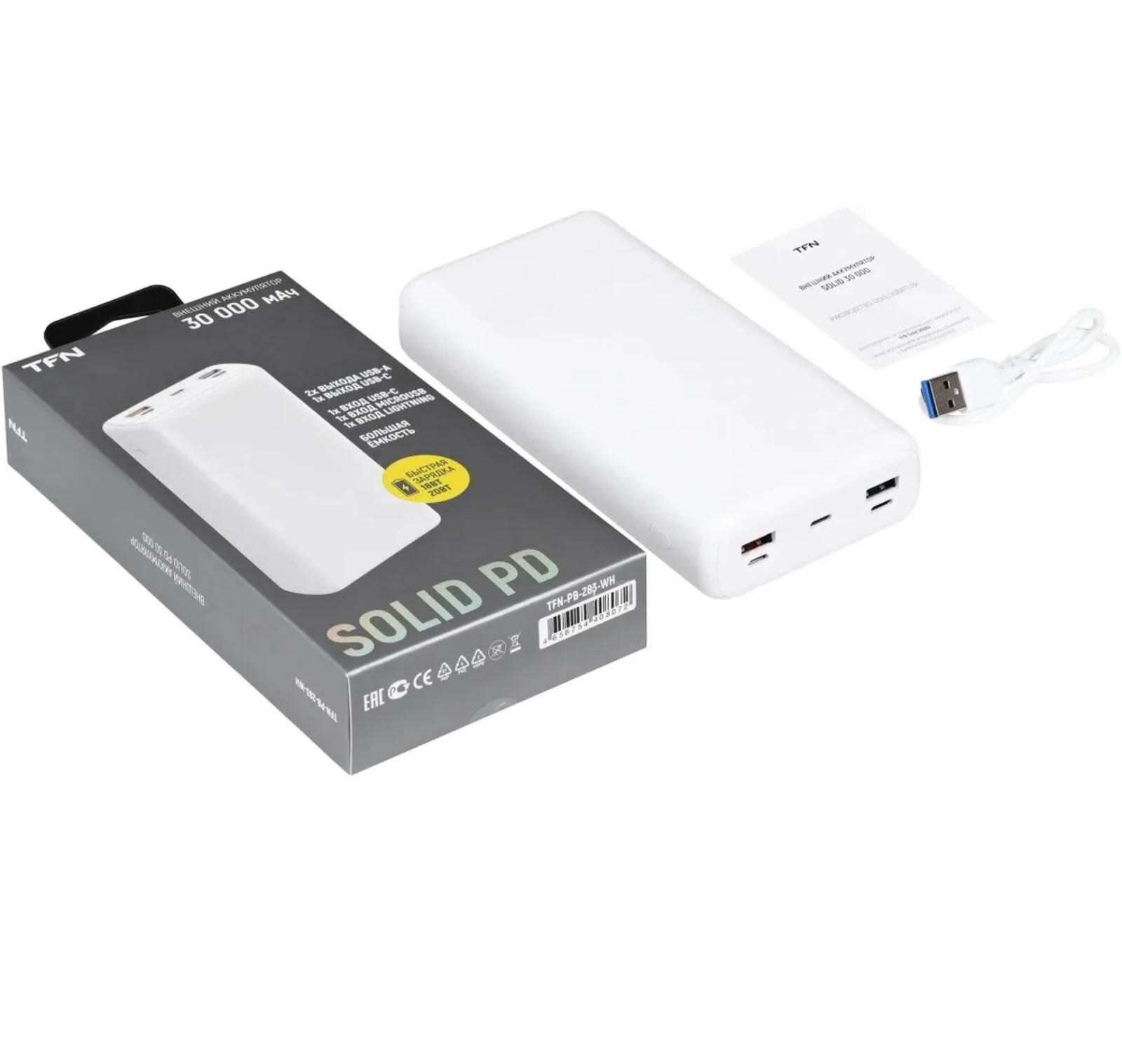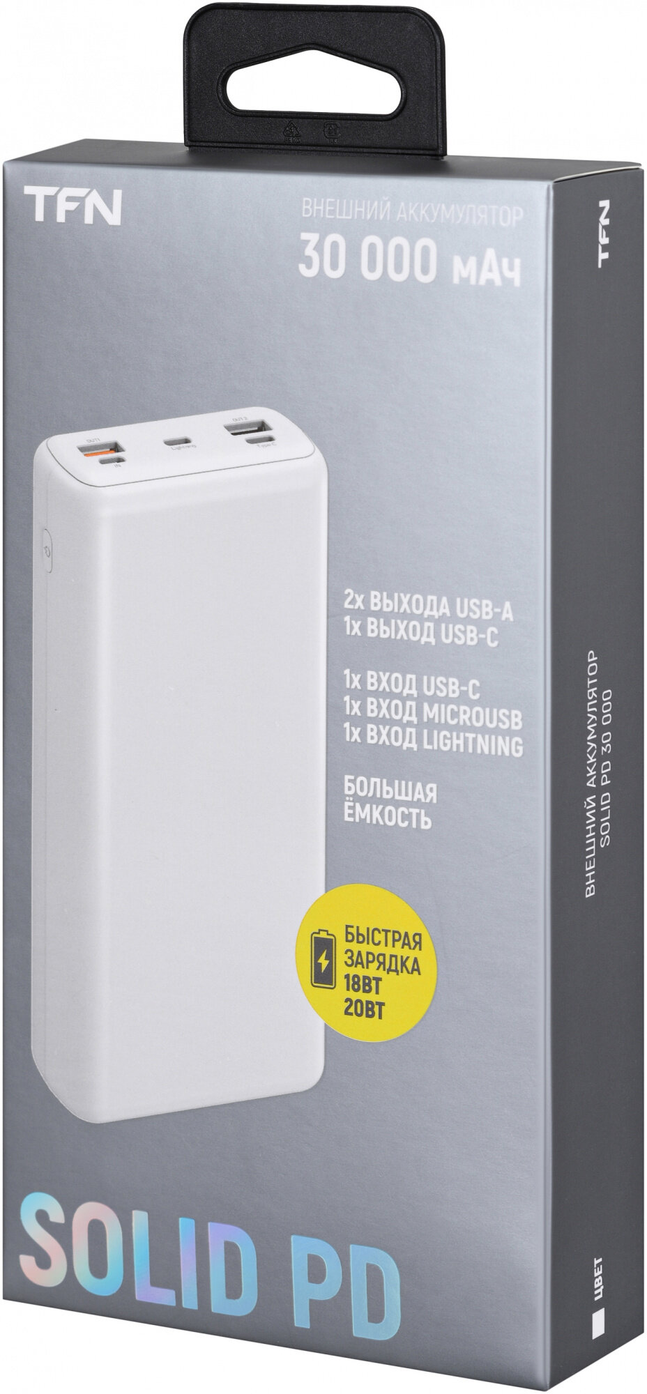 Внешний аккумулятор TFN 30000mAh Solid 30 PD белый, TFN-PB-283-WH