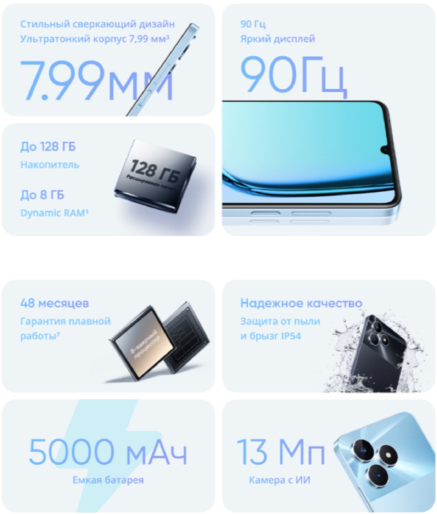 Смартфон realme Note 50 4/256 ГБ RMX3834, Небесный голубой