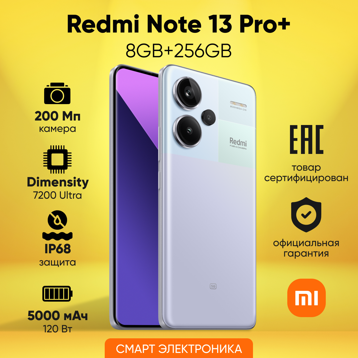 СохранитьСмартфон Xiaomi Redmi Note 13 Pro+ 5G 8GB/256GB Aurora Purple (23090RA98G) интересное:
