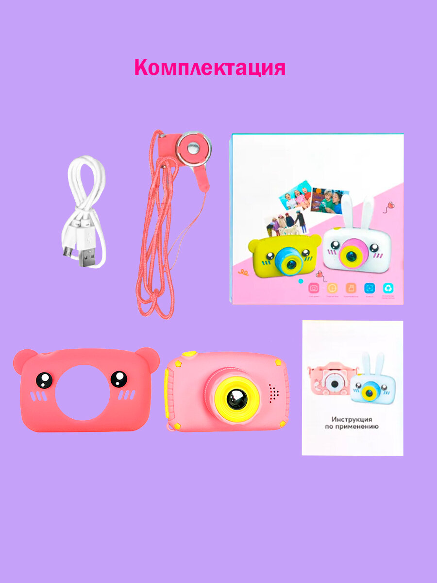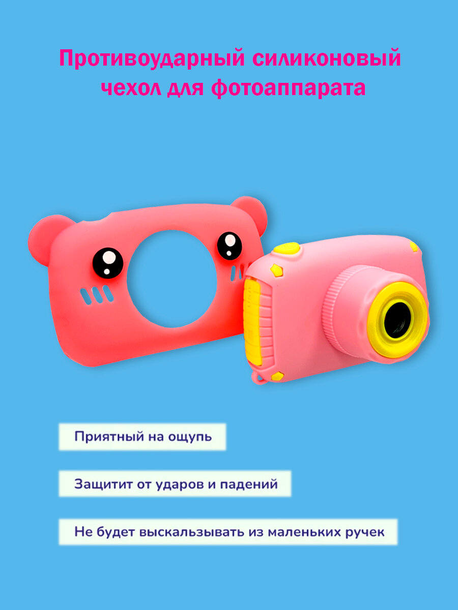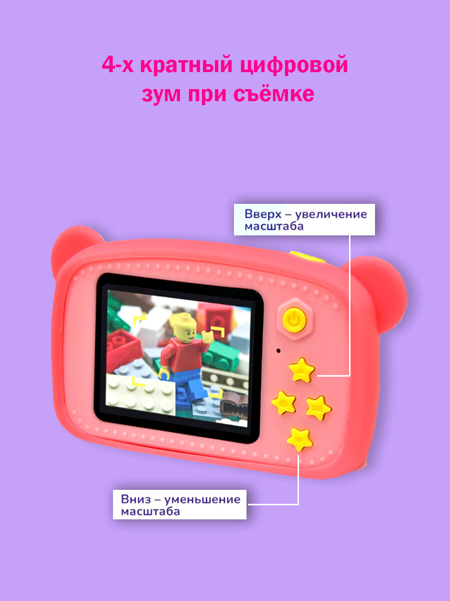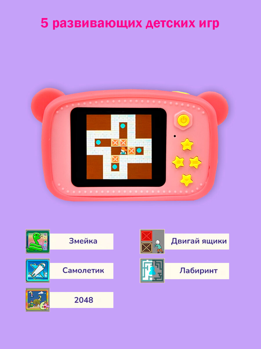 Детский фотоаппарат Медвежонок игрушка 3в1: фото, видео и игры / цвет розовый