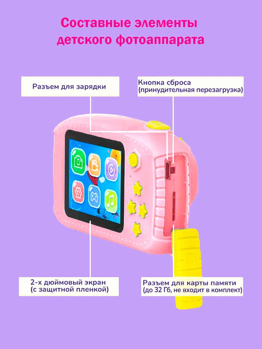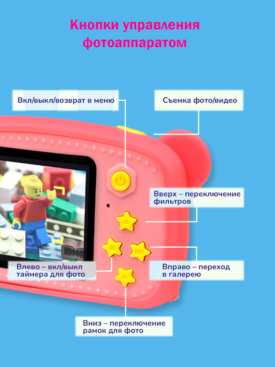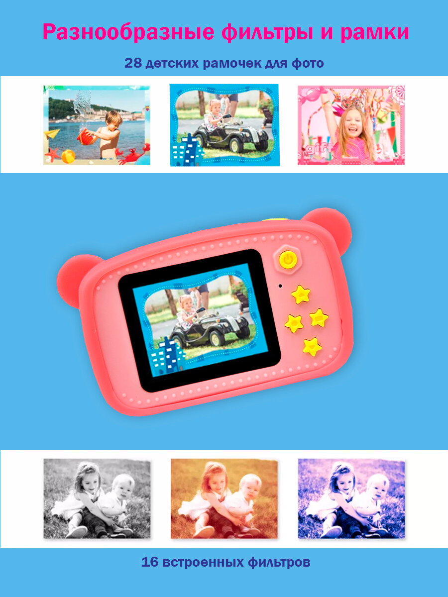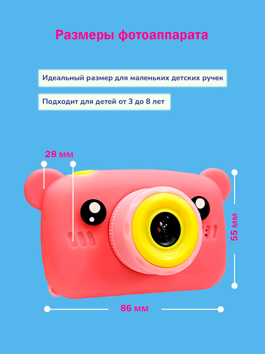 Детский фотоаппарат Медвежонок игрушка 3в1: фото, видео и игры / цвет розовый