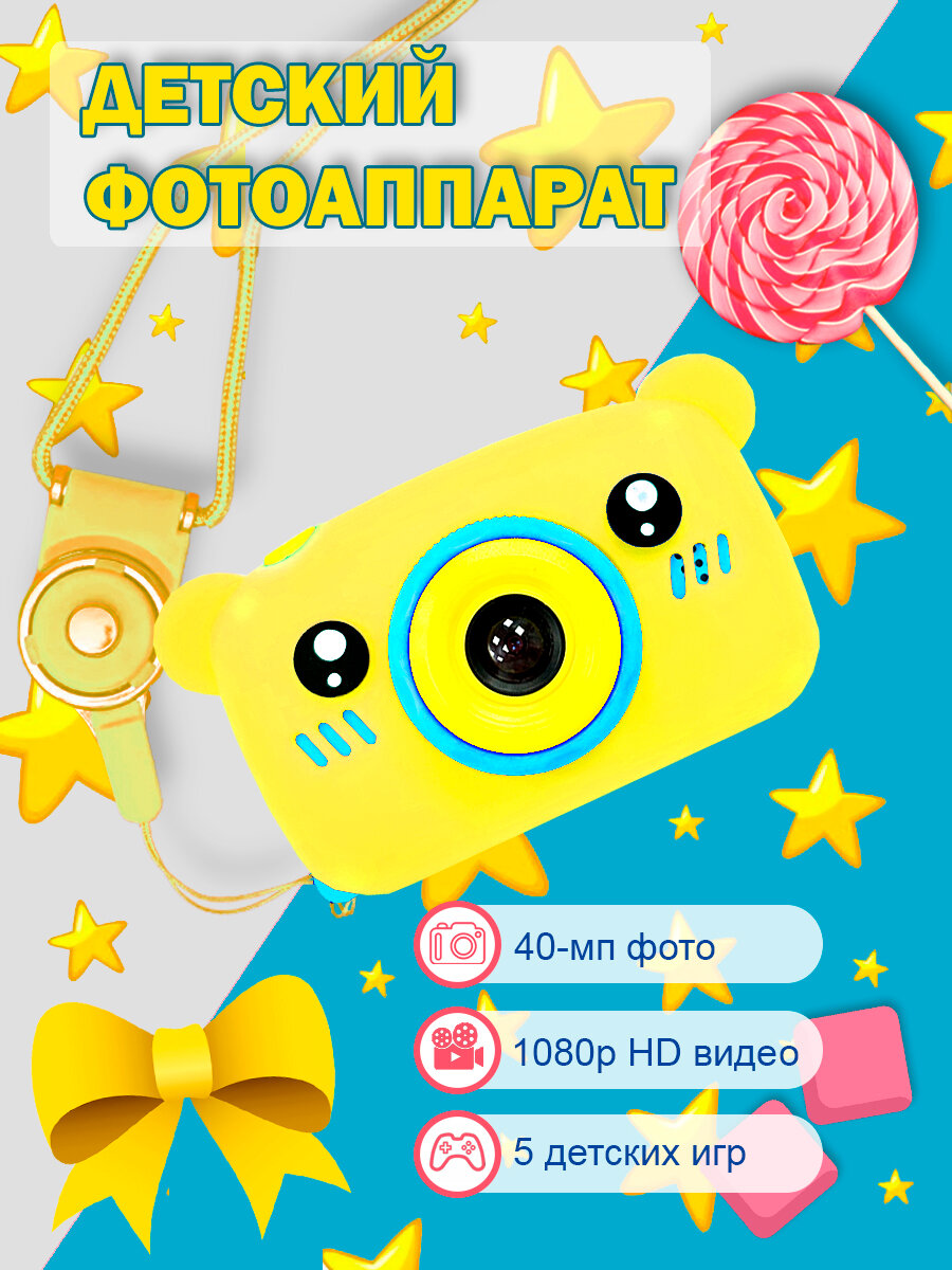 Детский фотоаппарат Медвежонок игрушка 3в1: фото, видео и игры / цвет желтый интересное: