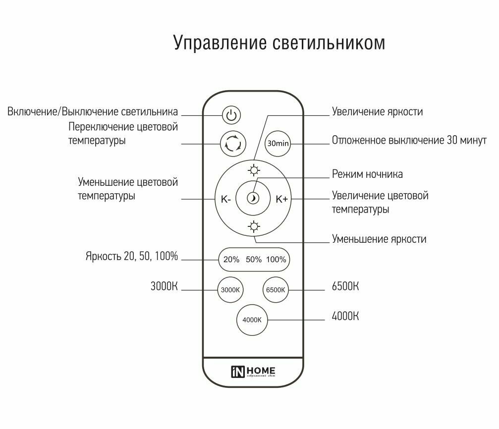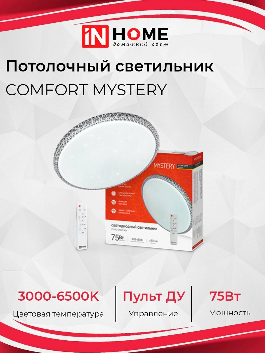 Светильник диодный COMFORT MYSTERY 75Вт 230В 3000-6500K 6000Лм с пультом ДУ IN HOME 4690612034829
