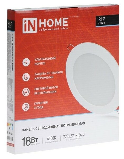 Светильник светодиодный RLP 18Вт 6500К IP40 1080лм 230В 225мм круглый встраив. панель бел. IN HOME 4690612038476