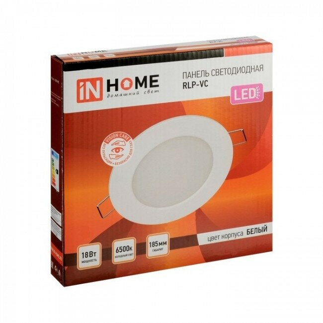 Панель светодиодная встраиваемая круглая RLP 18Вт 230В 6500К 1080Лм 225мм белая IP40 IN HOME