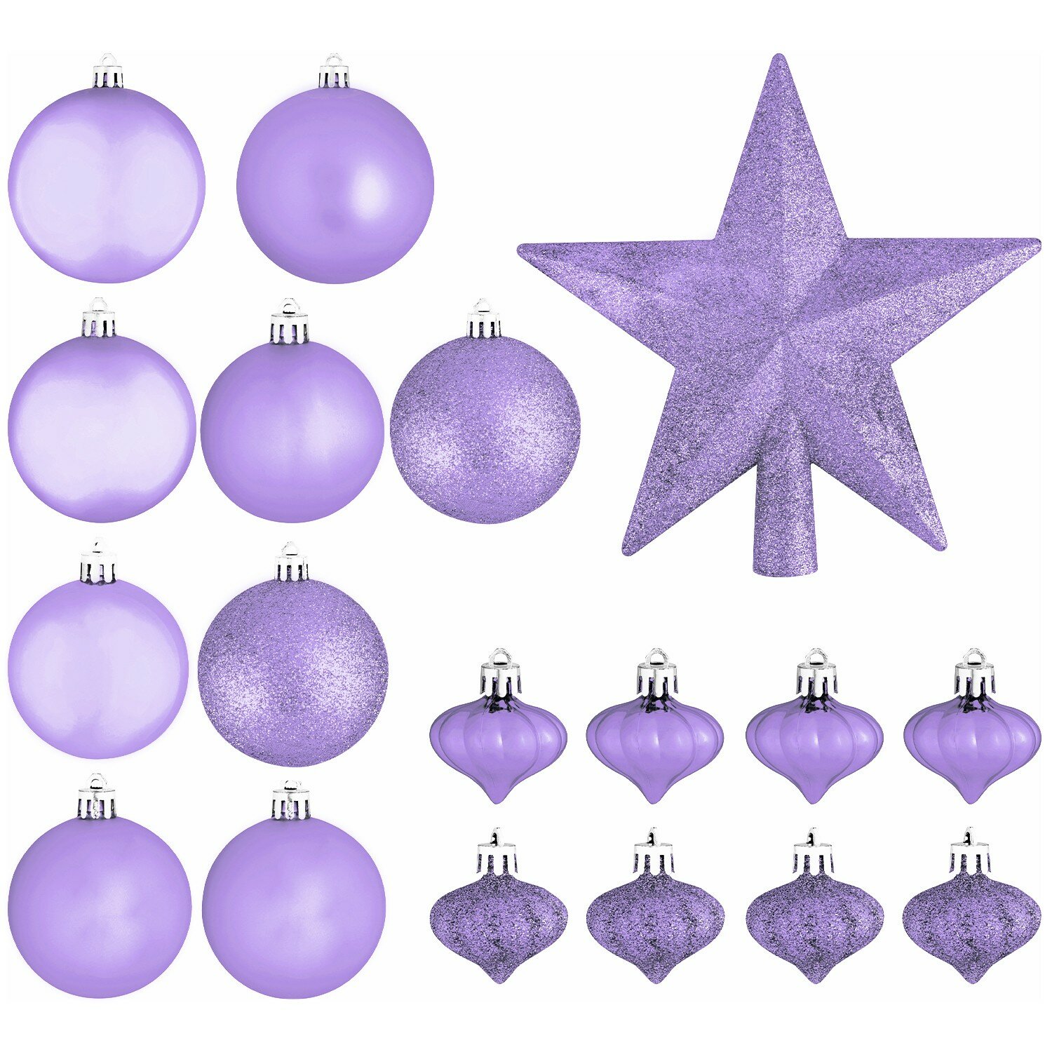 Набор Шары + звезда SYCB17-516, 18 шт/набор 8 см, 7 см, 6 см, 4 см, звезда 21 см