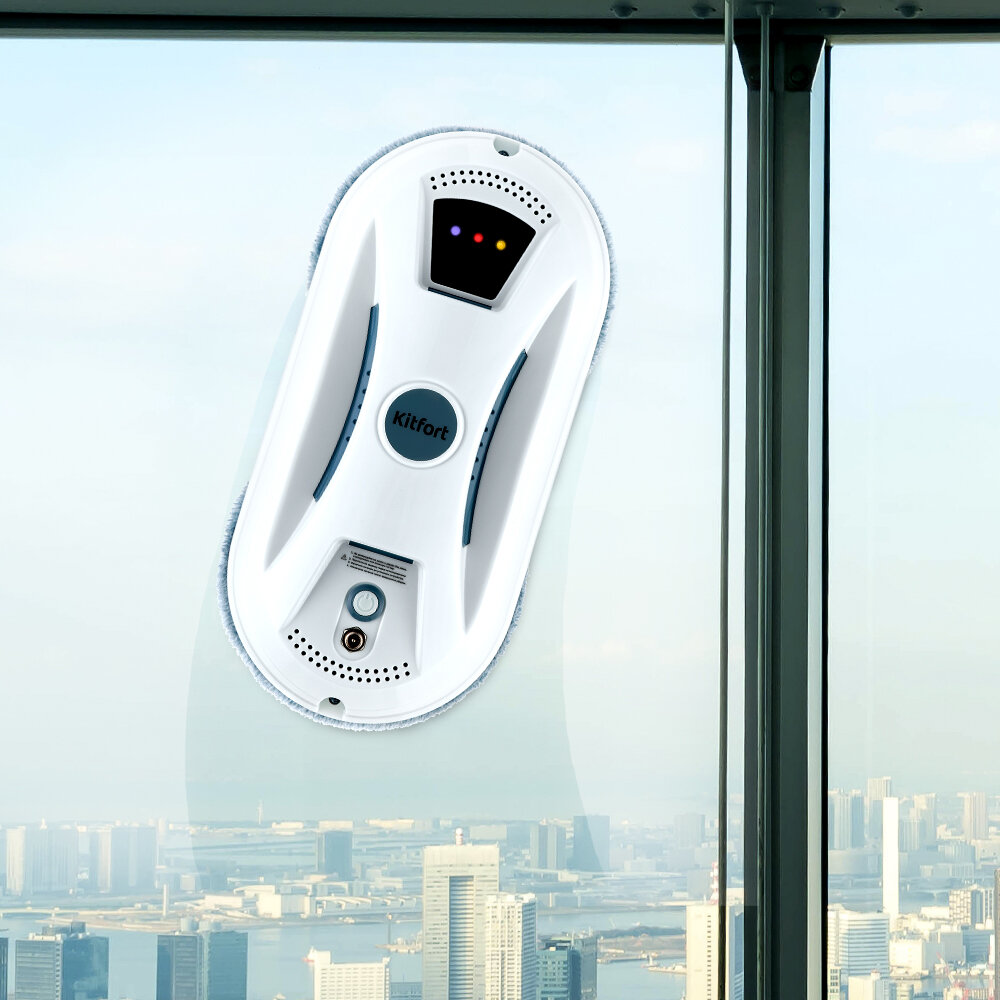 Купить Робот-мойщик окон Kitfort KT-5187, 80 Вт, 5.5 мин/м2, от АКБ, бело-голубой