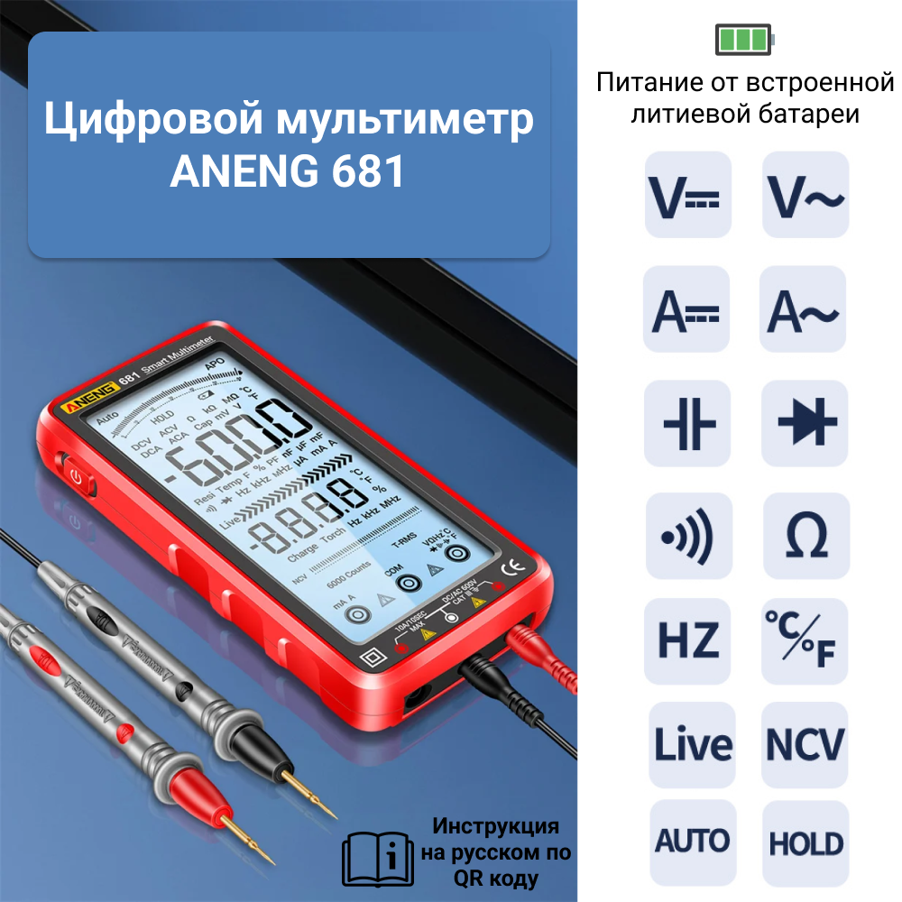 Цифровой профессиональный мультиметр True RMS ANENG 681 с NCV. 16 функций.