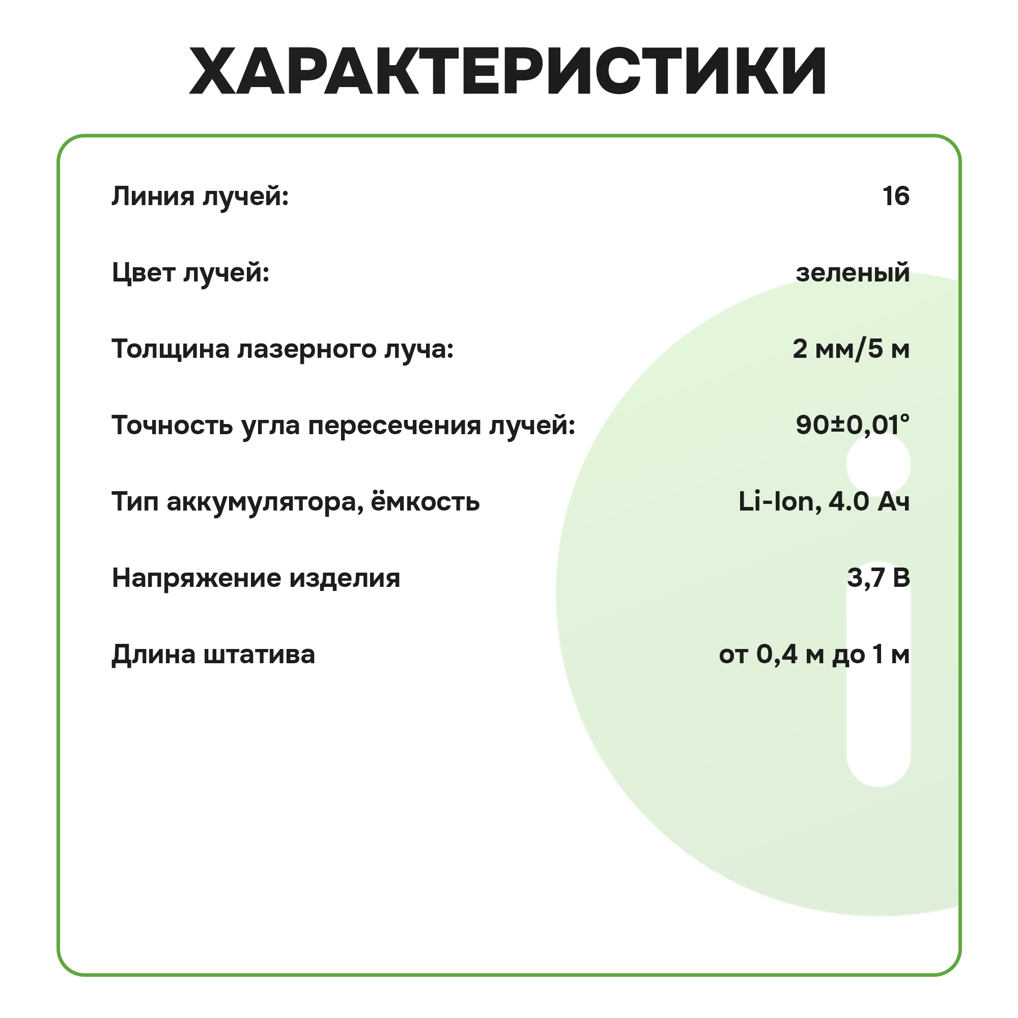 | Цвет луча | зеленый |