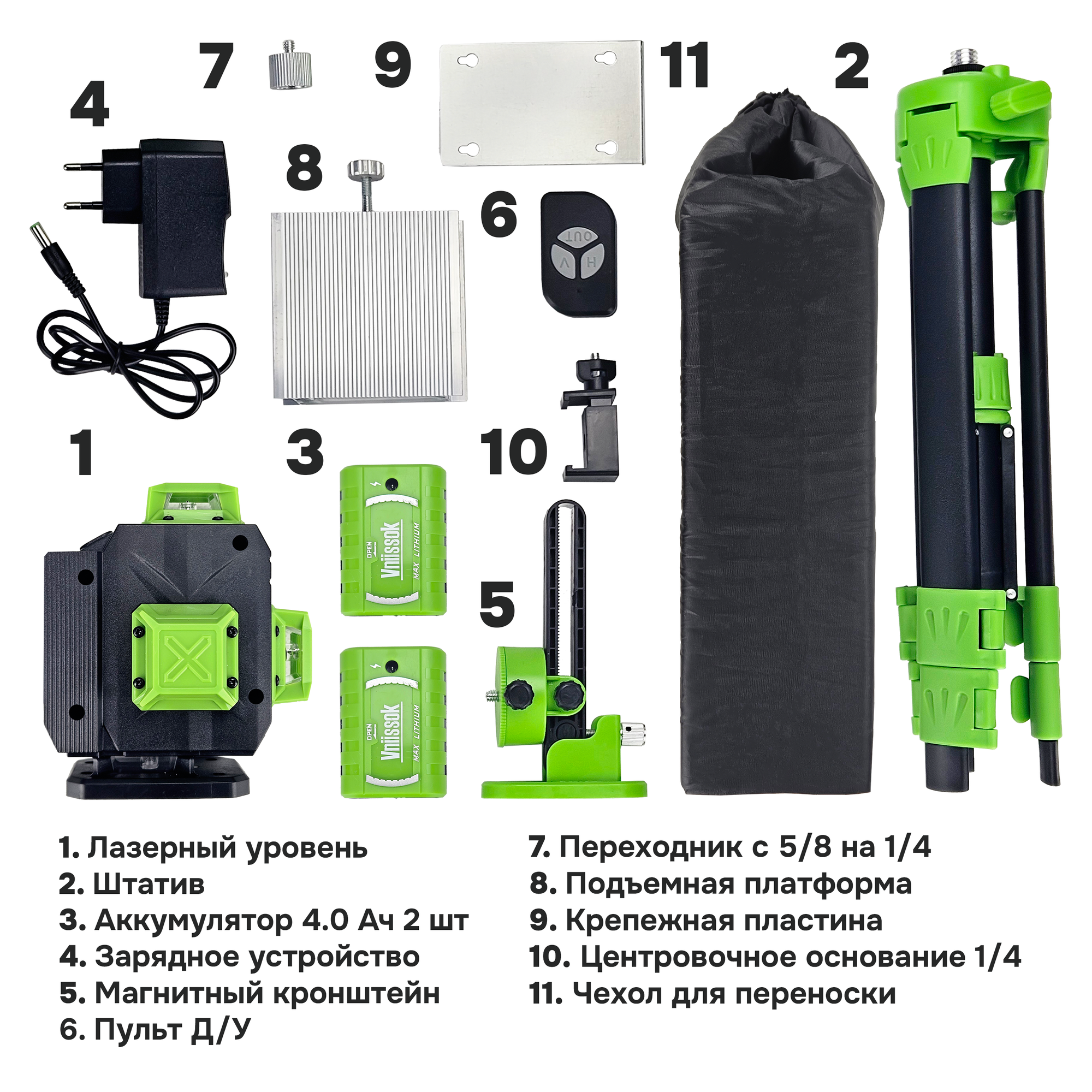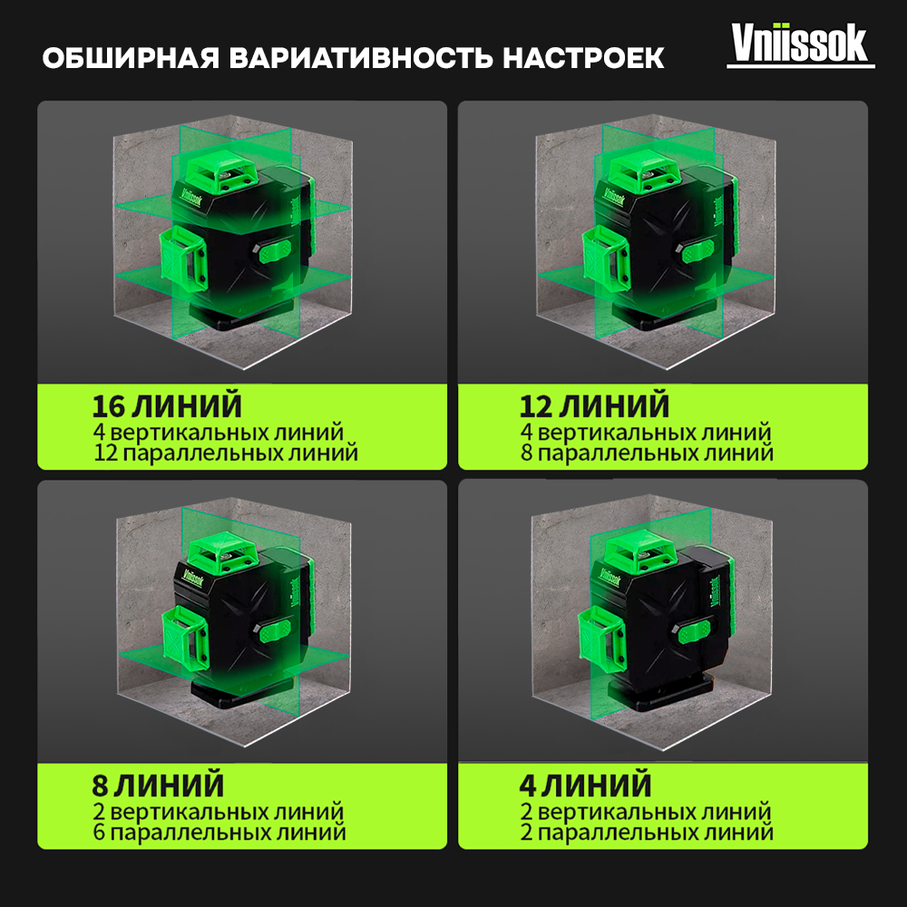 Лазерный уровень VNIISSOK Зеленый 16 лучей с пультом управления и штативом 1м. ,Зеленый луч уровень 360 град