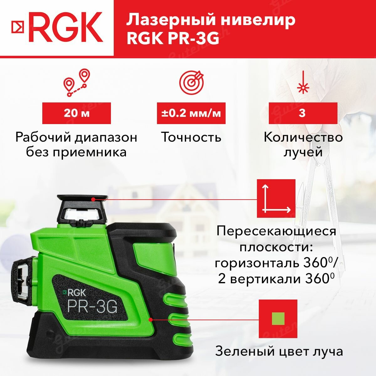 Лазерный построитель плоскостей RGK PR-3G NEW интересное: