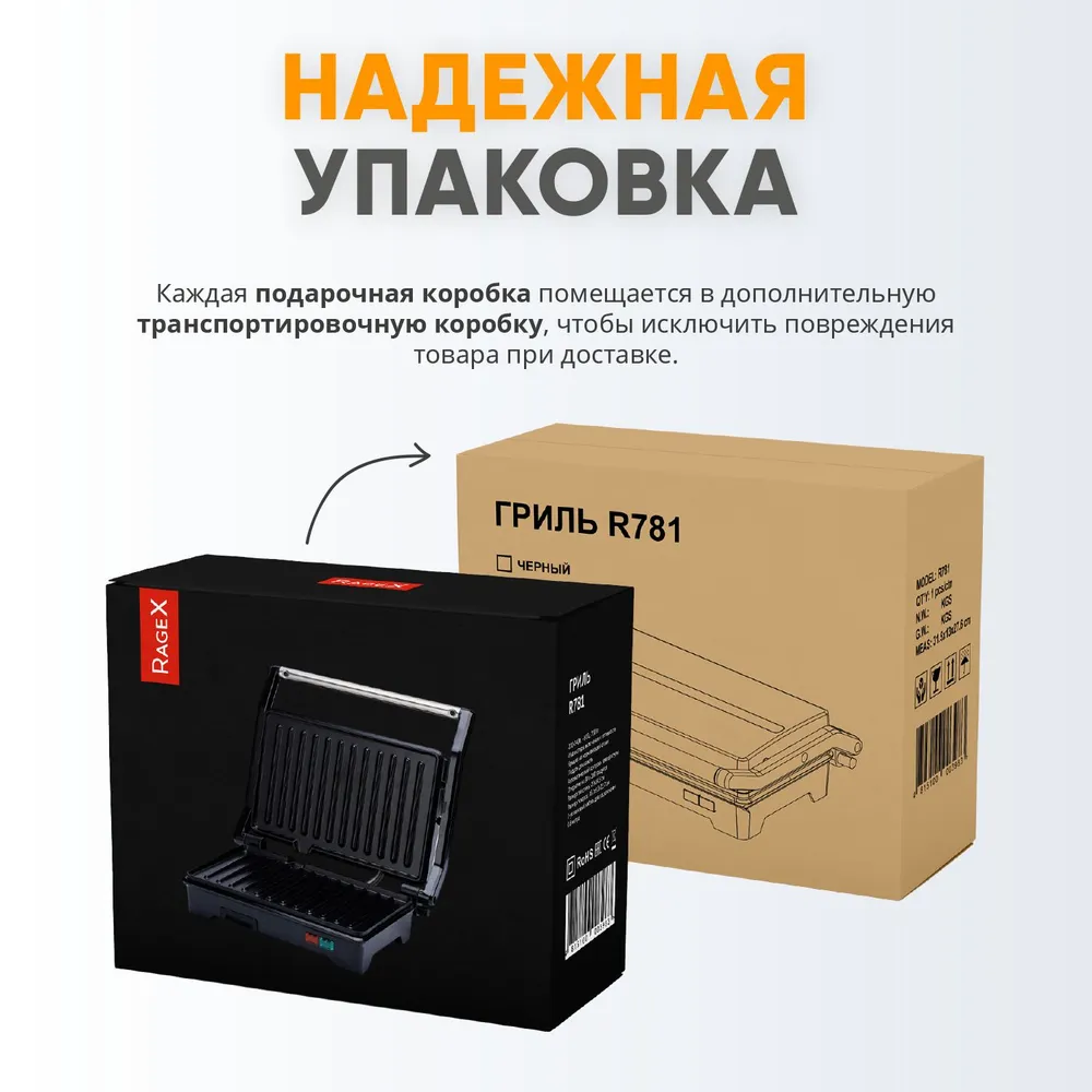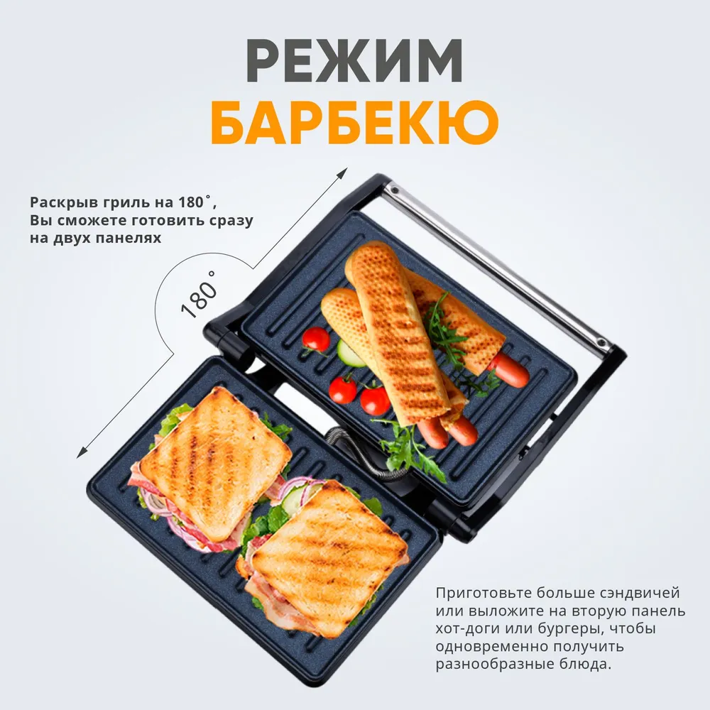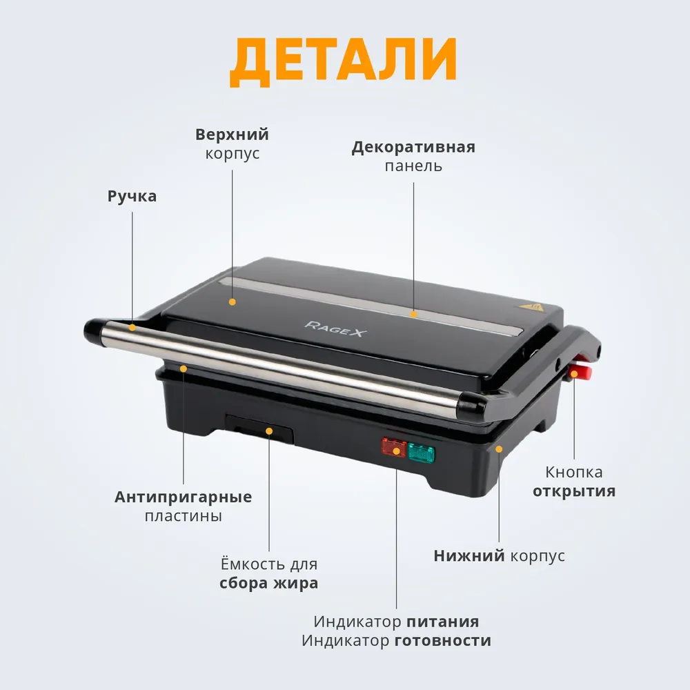 Сэндвичница RageX R781-000 с антипригарным покрытием, открытие на 180 градусов, 750 Вт, черный интересное: