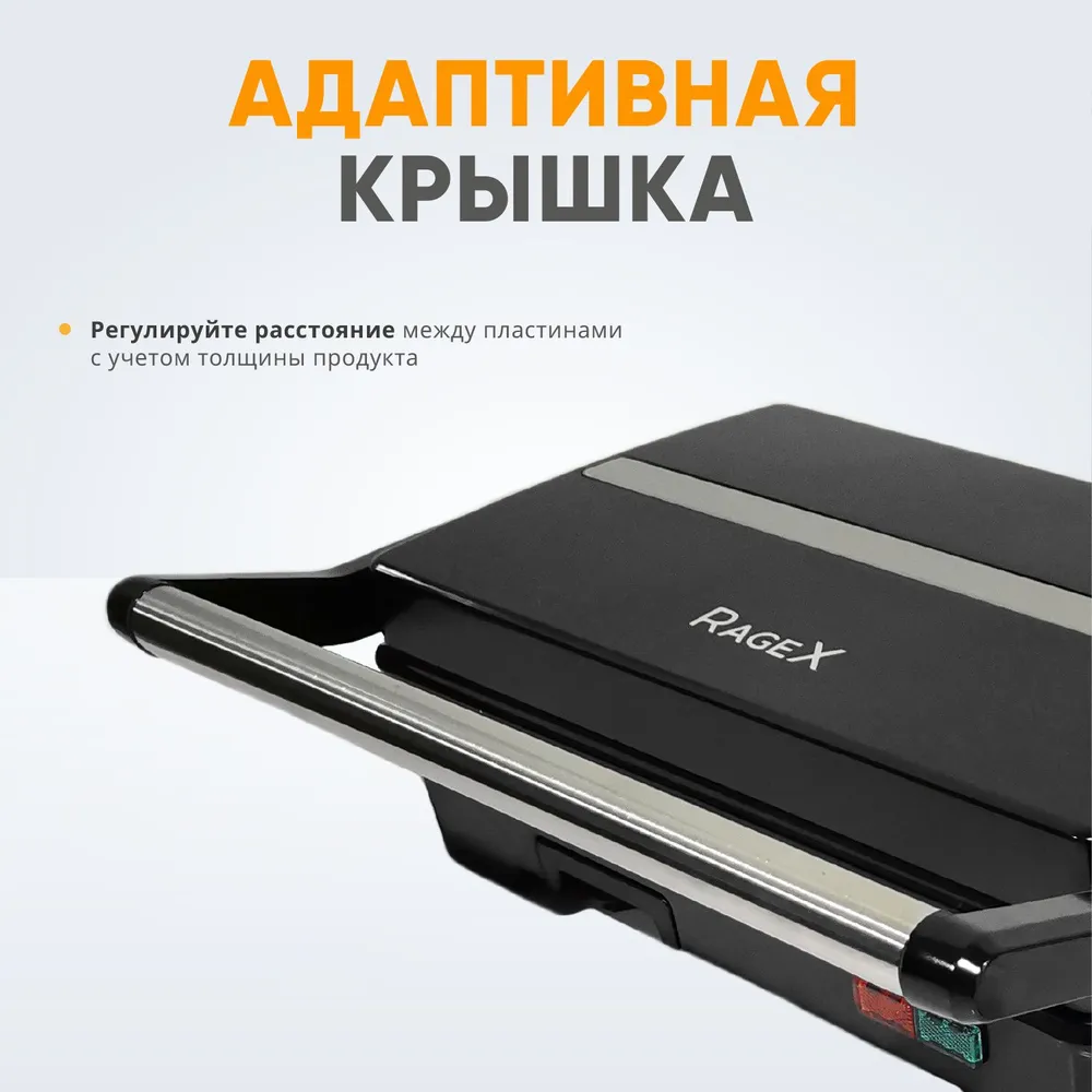 Купить Сэндвичница RageX R781-000 с антипригарным покрытием, открытие на 180 градусов, 750 Вт, черный