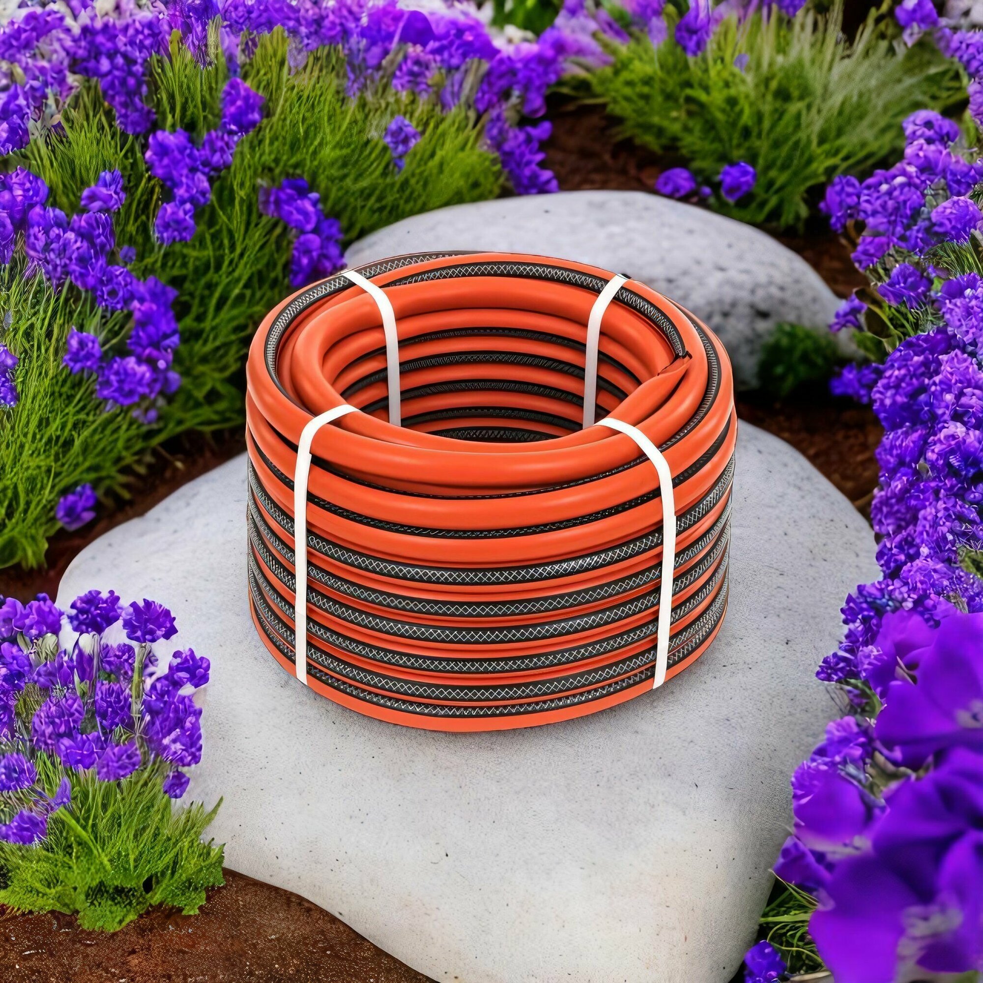 Шланг для полива ЖУК Оптима 3/4" 3-х слойный 50 метров морозостойкий армированный черно-оранжевый
