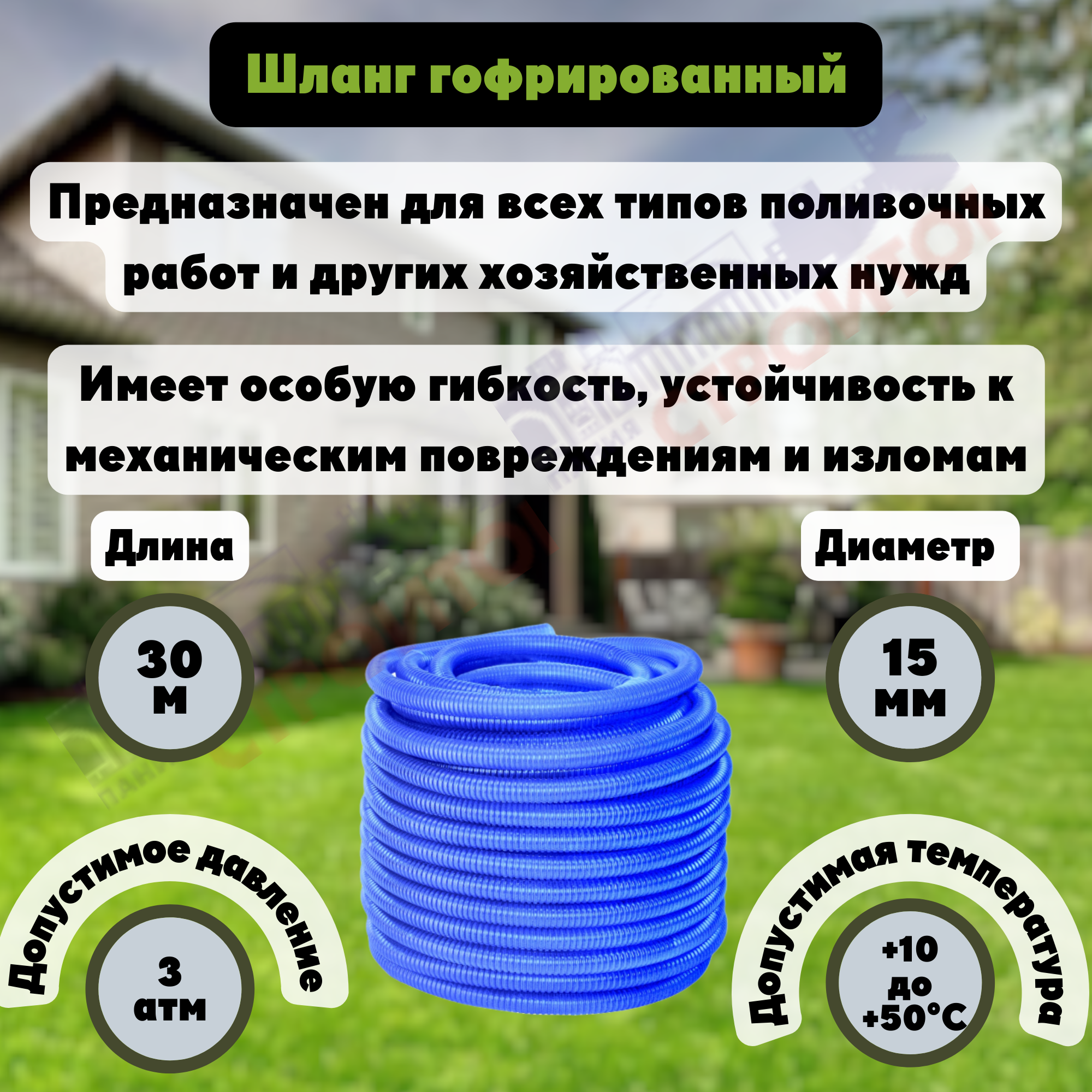 Шланг гофрированный, поливочный 30м