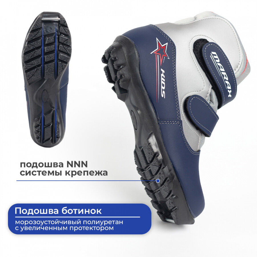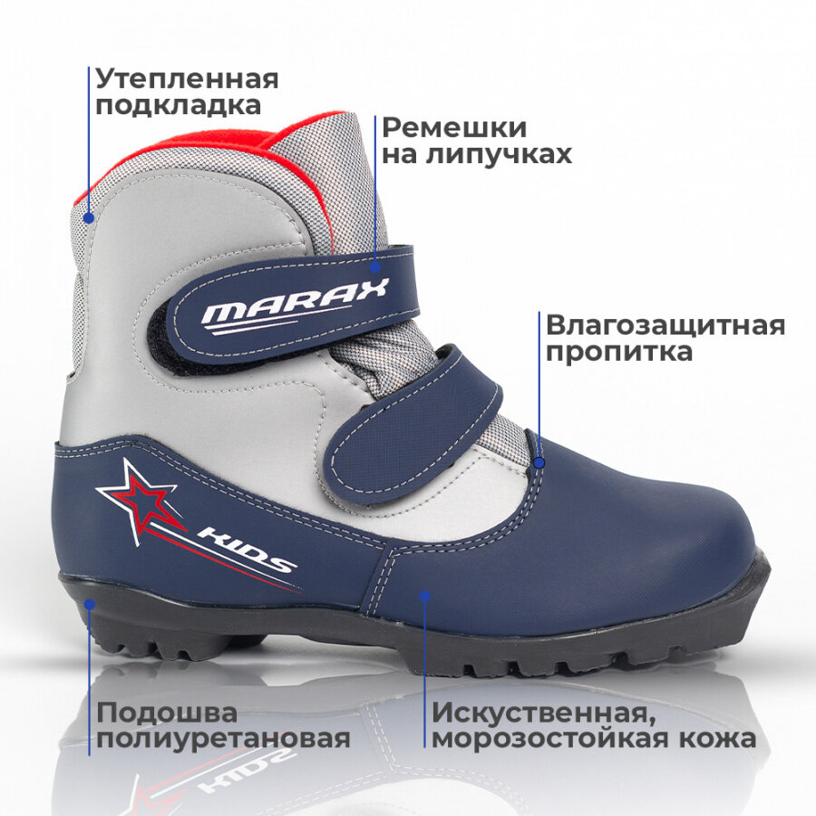 Ботинки лыжные MARAX MXN-Kids NNN цвет синий/серебро, размер 34