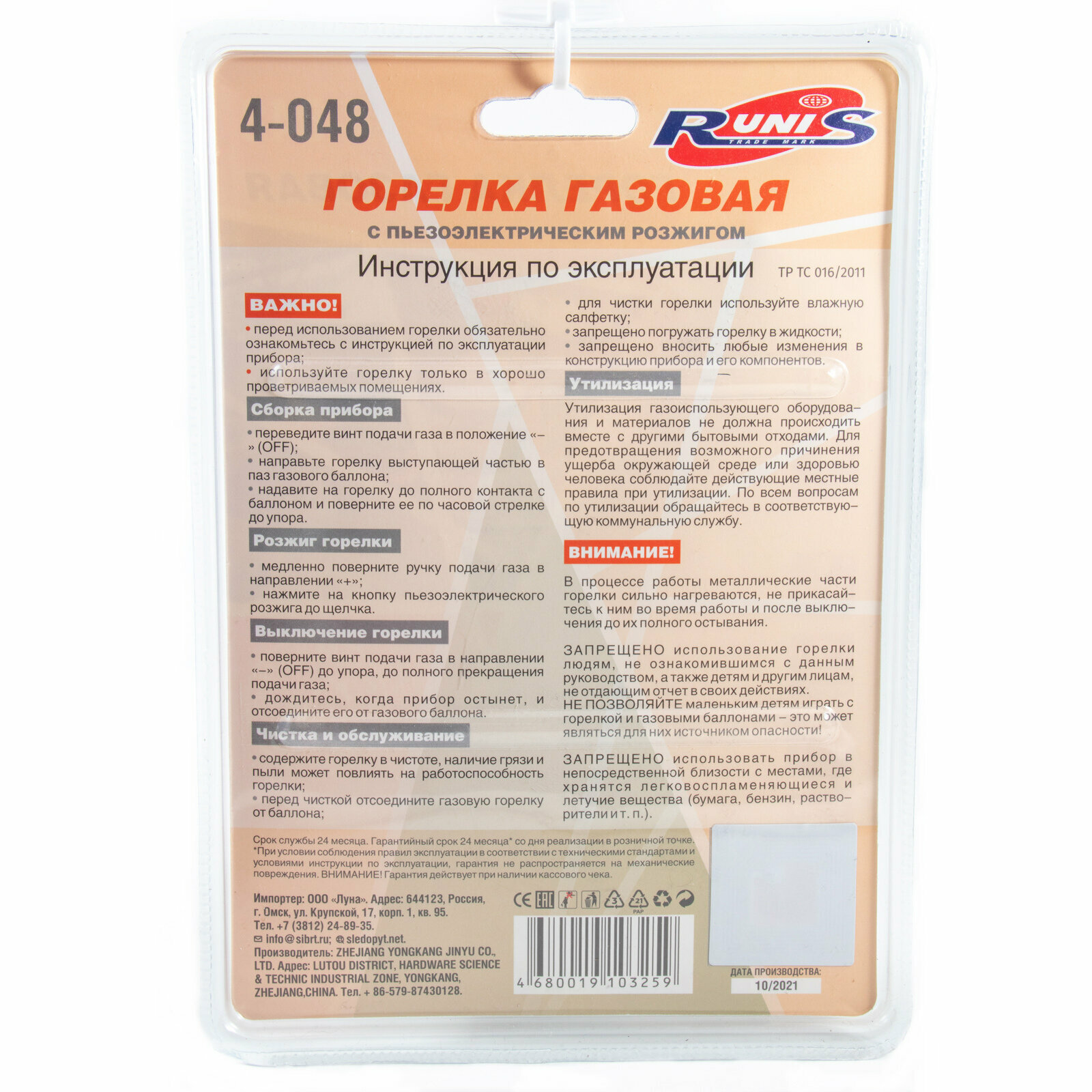 Горелка газовая RUNIS Premium Р03 пьезо (цанг) интересное: