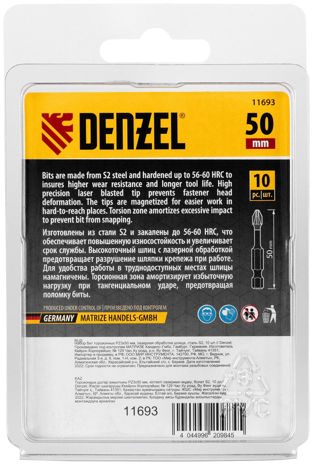 Набор бит торсионных PZ3x50 мм, лазерная обработка шлица, сталь S2, 10 шт.// Denzel 11693