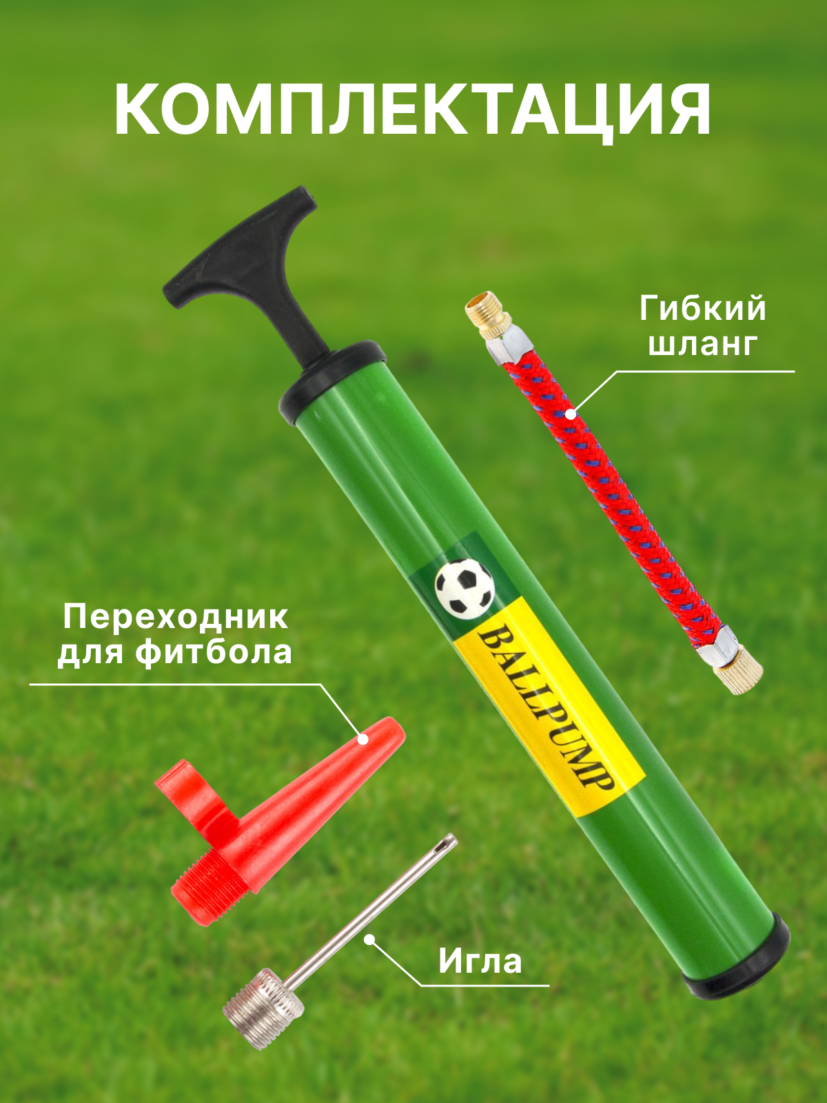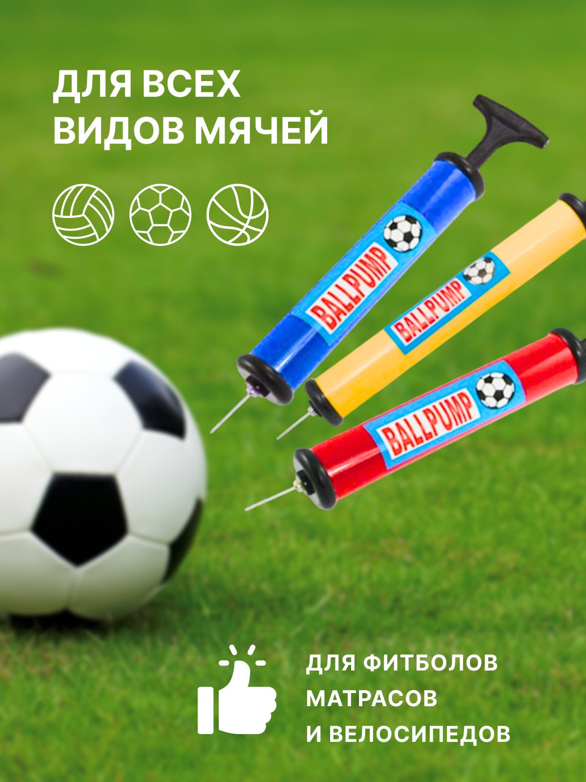 Насос для мячей 28 см, шланг + 2 насадки, цвета микс интересное: