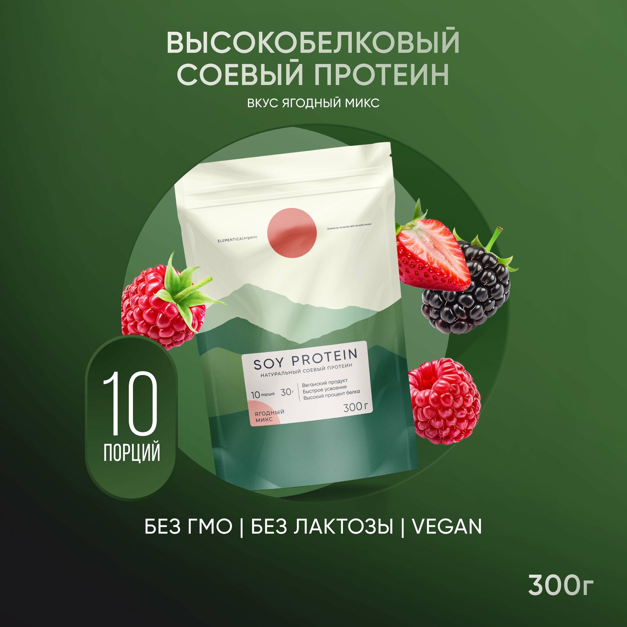 Купить Соевый протеин, изолят соевого белка, soy protein, растительный, порошок, ягодный микс, 300 г