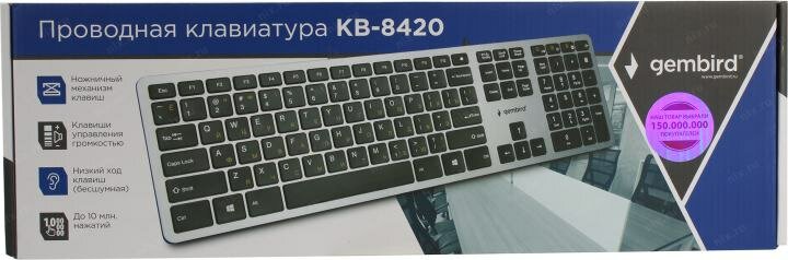 Клавиатура ноутбучного типа Gembird KB-8420,USB, ножничный механизм, клавиши управления громкостью интересное: