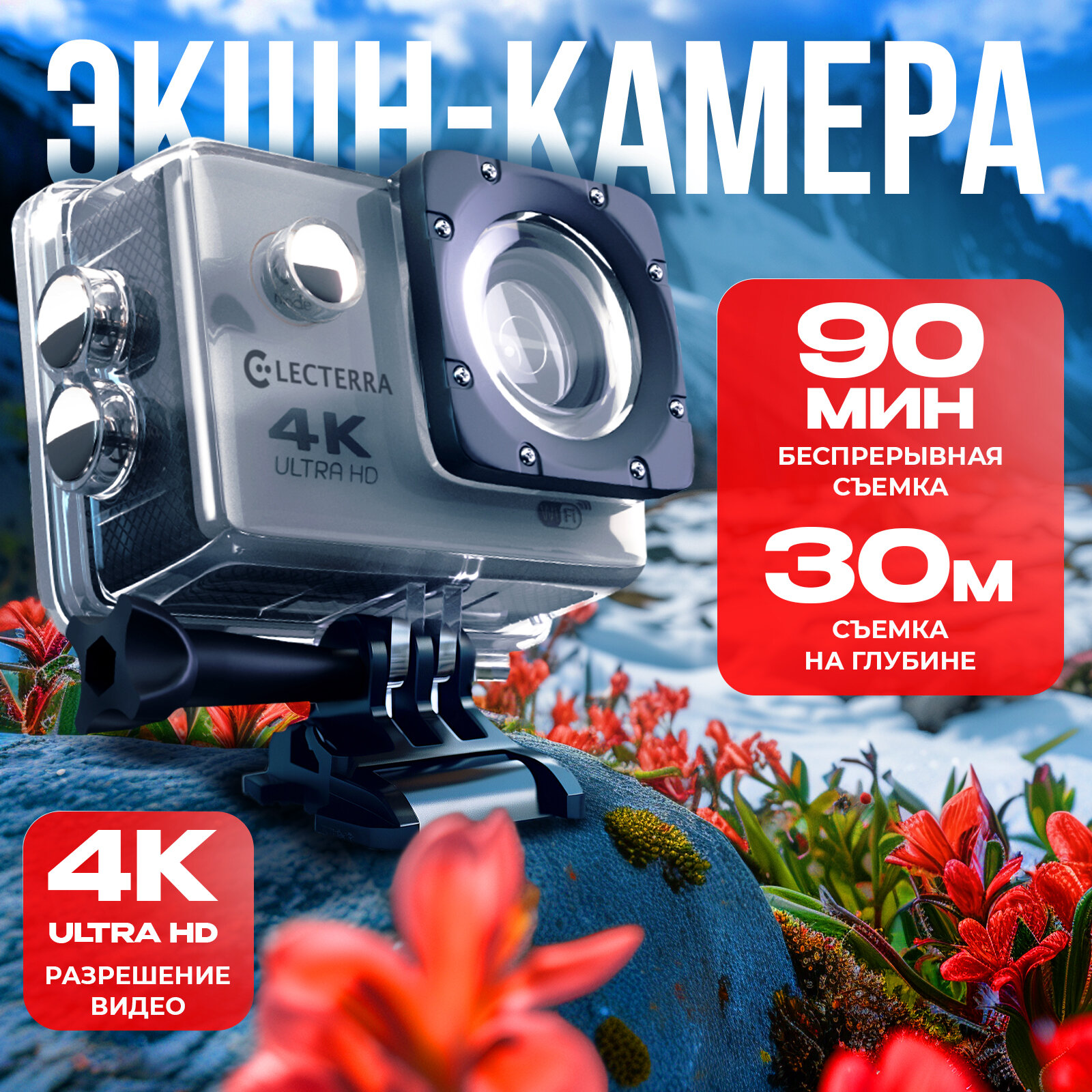 Экшен камера Electerra 4К UHD - видеокамера для активного отдыха