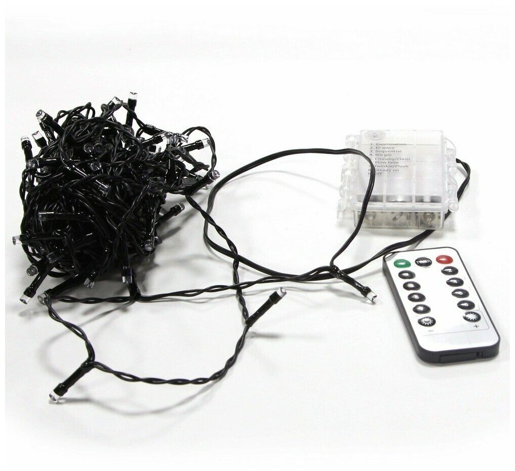 Светодиодная гирлянда на батарейках 120 разноцветных LED ламп 12 м, черный ПВХ, контроллер, пульт управления, IP44, SNOWHOUSE LD120-GM-BO-RC