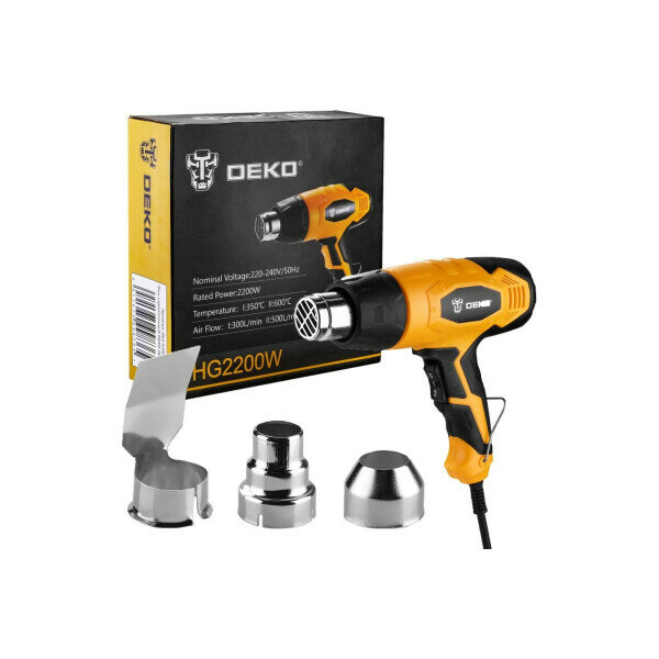 Купить Фен технический DEKO HG2200W, 2200 Вт, 300/500 л/мин, 350/600 градС, 3 насадки