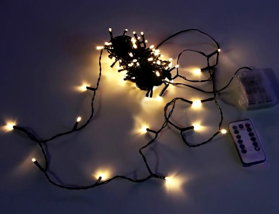 Snowhouse Светодиодная гирлянда на батарейках 120 теплых белых LED ламп 12 м, черный ПВХ, контроллер, пульт управления, IP44 LD120-GWW-BO-RC
