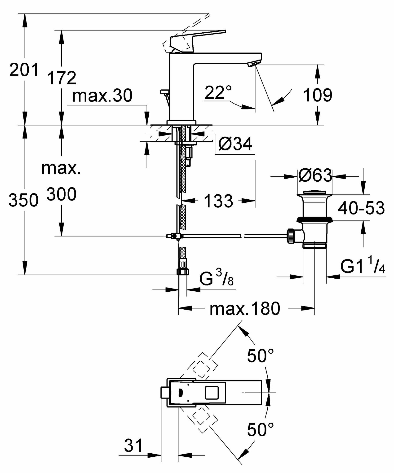 Смеситель Grohe Eurocube 23445000 для раковины с донным клапаном