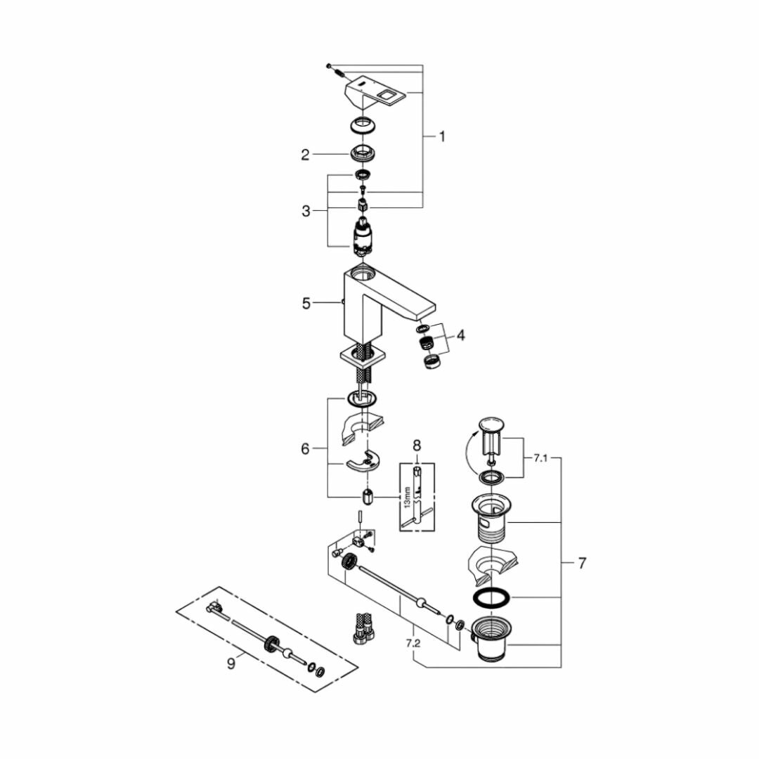 Grohe 23445000 Eurocube Смеситель для раковины, сливной гарнитур, хром