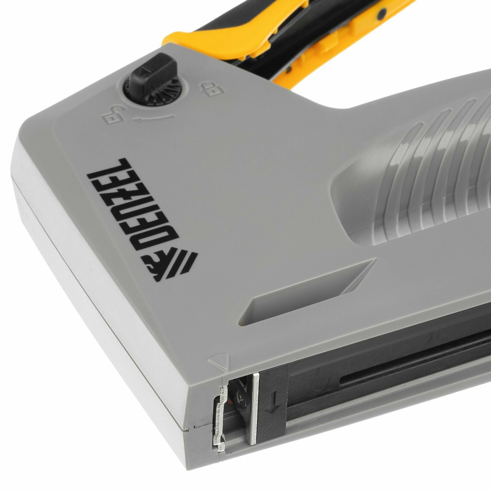 DENZEL Степлер мебельный, пластиковый корпус, тип 53, 6-14 мм, тип 300, 15 мм, тип 500, 15 мм Denzel ( 40213 ) интересное: